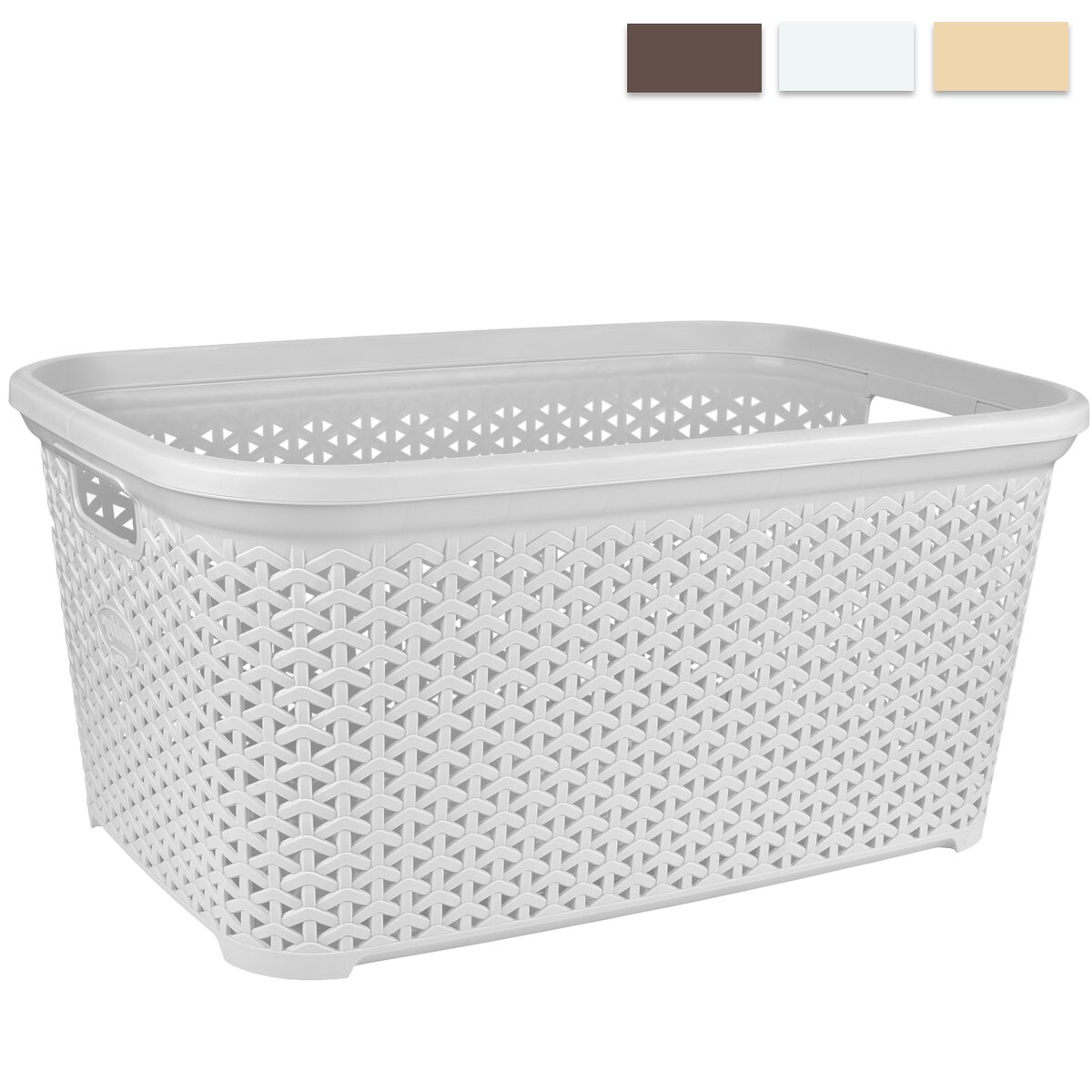 Koš prádelní se dvěma uchy. Materiál: plast. Dekor ratan. Barevné varianty. Rozměry: 60x40x28 cm.