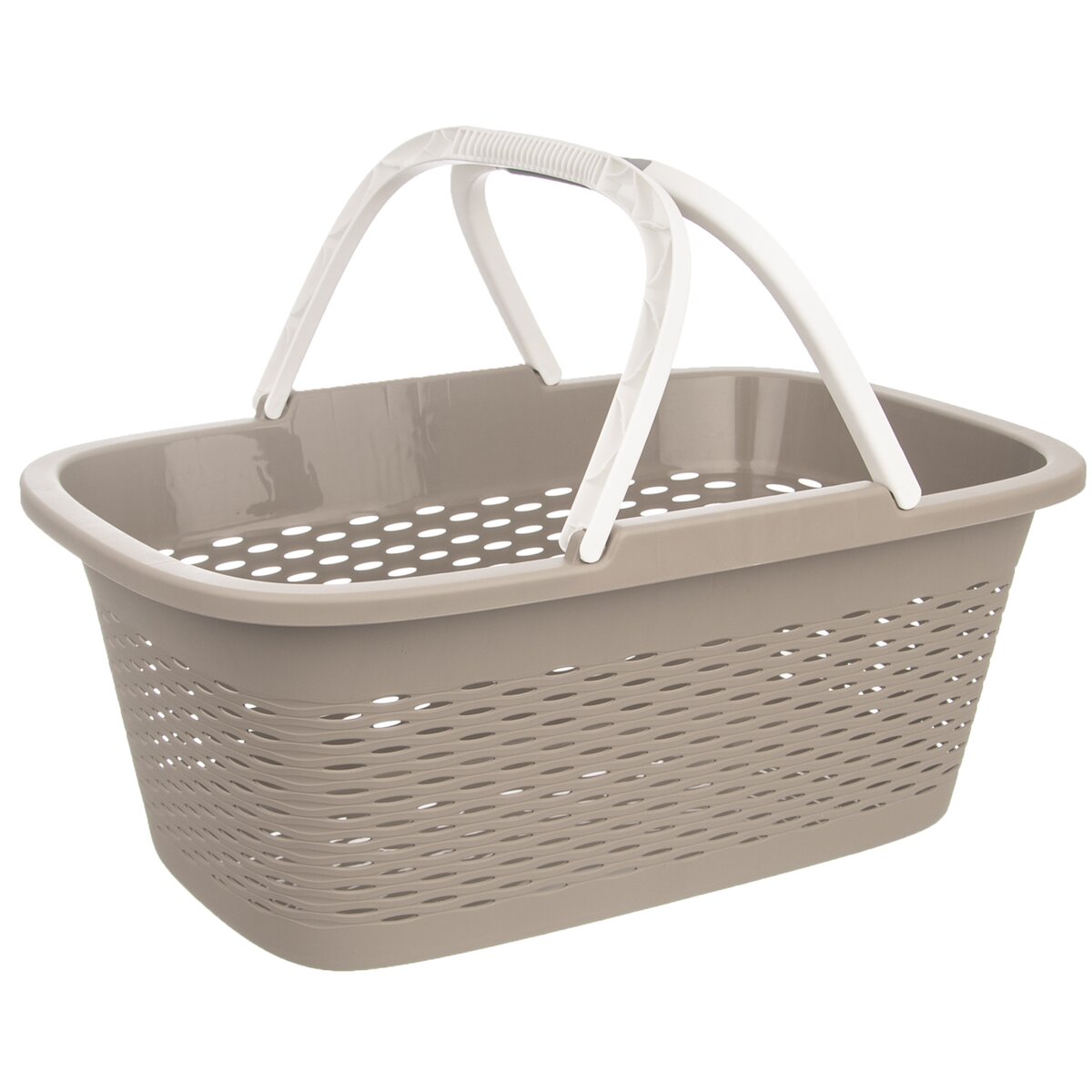 Kód produktu 730546Šedý plastový koš LOOP se dvěma sklápěcími držadly a děrovaným povrchem, o velikosti 58x37,5x24 cm, je vhodný na přenášení čistého vypraného prádla a nejrůznějších věcí v domácnosti.