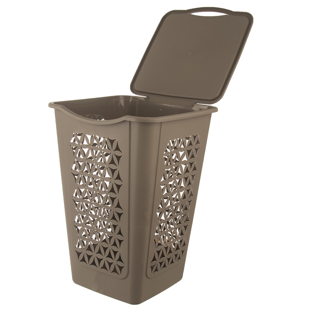 Kód produktu 730552Šedohnědý plastový koš BLUMA s víkem a zajímavým děrovaným povrchem, o velikosti 38x38x54 cm, využijete na špinavé prádlo.