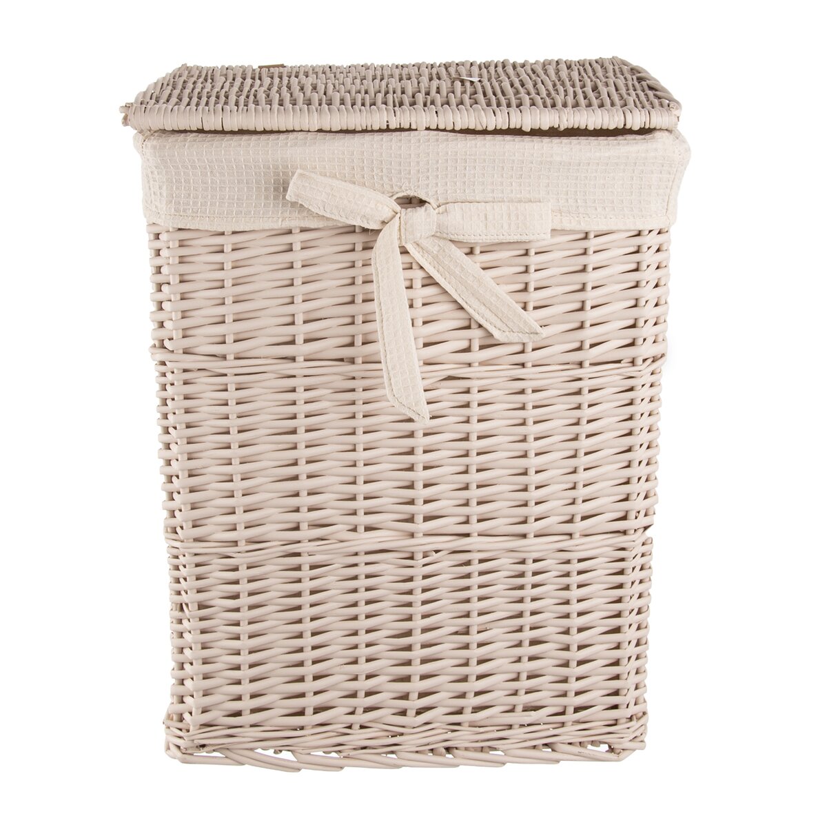 Tento béžový koš s víkem vyrobený z vrbového proutí je praktický na uložení špinavého prádla či jiných věcí v domácnosti. Uvnitř se nachází odnímatelná textilie vyrobená z 65% bavlny a 35% polyesteru, kterou lze v případě potřeby prát v pračce.