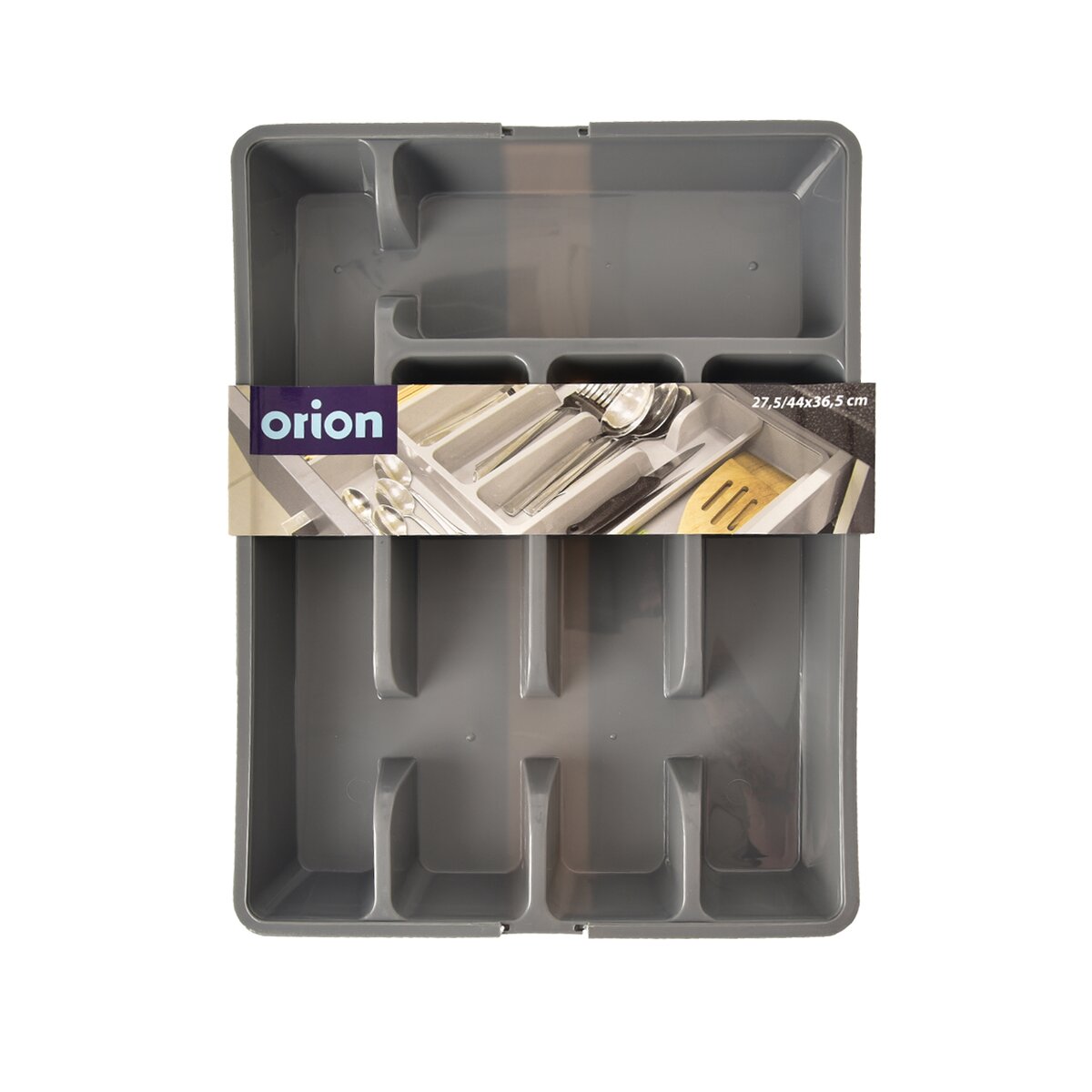 Kód produktu 150749Šedý plastový příborník má velikost 27,5/44x36,5x4,3 cm. Je rozdělený na 5 základních sekcí, navíc se dvěma dalšími sekcemi, které lze vysunout do stran.