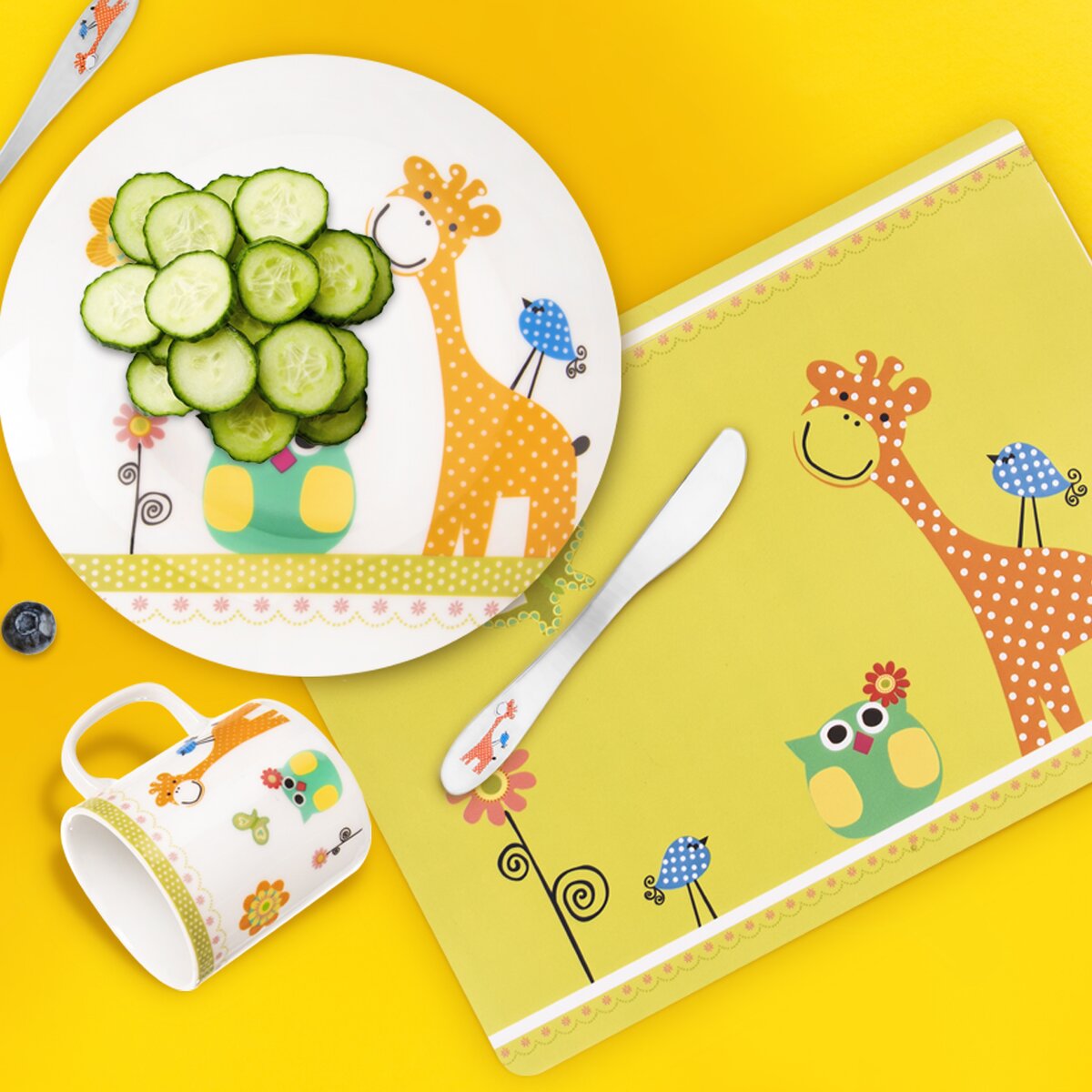 Kód produktu 710808Roztomilé dětské prostírání s motivem žirafy, které ochrání stůl před poškozením a ušpiněním.