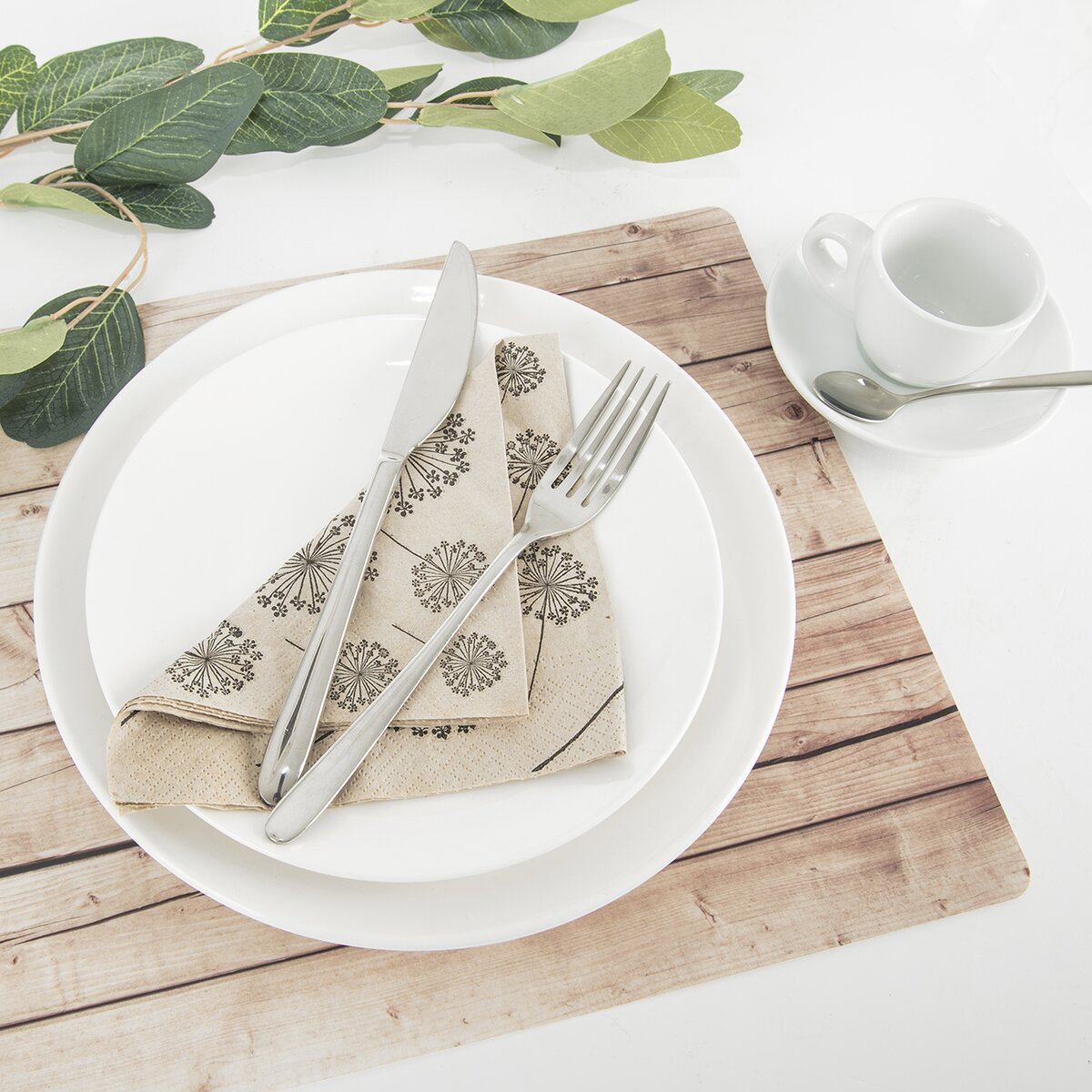 Kód produktu 728032Prostírání v imitaci světlého dřeva podtrhne stolování a ochrání stůl před poškozením a ušpiněním.