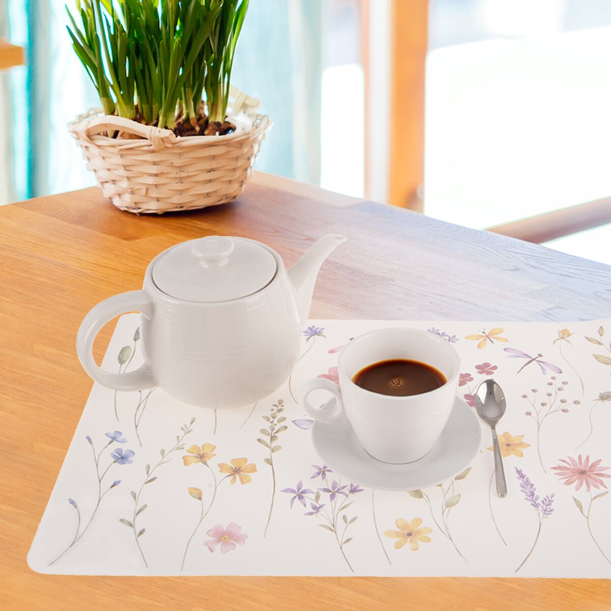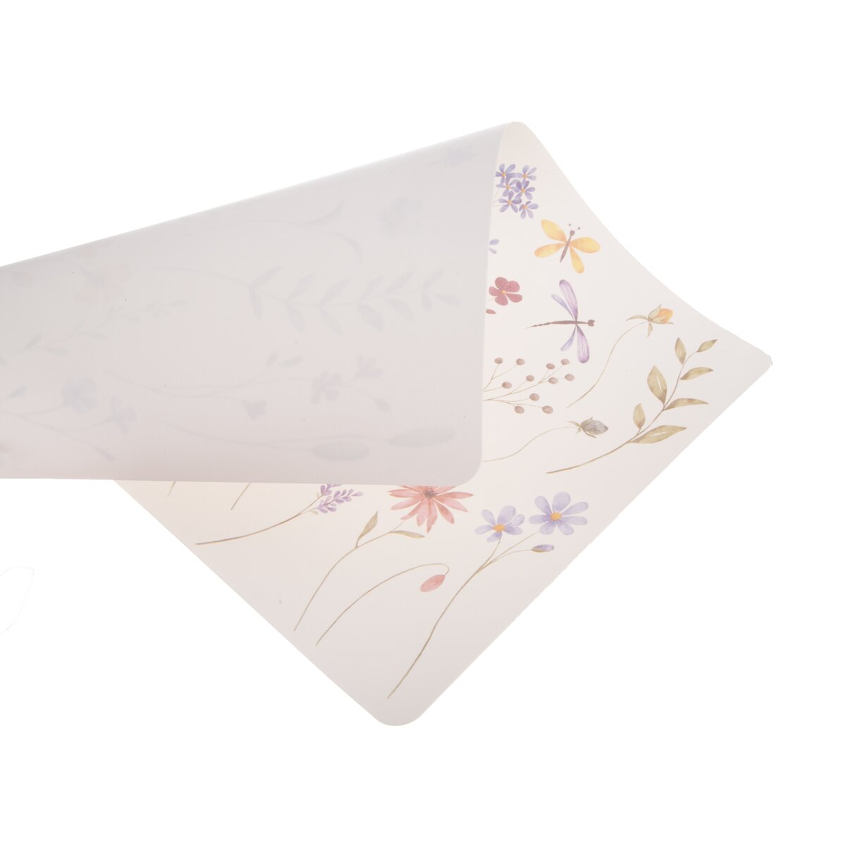 Kód produktu 728092Moderní světlé prostírání s motivy květin podtrhne stolování a ochrání stůl před poškozením a ušpiněním.