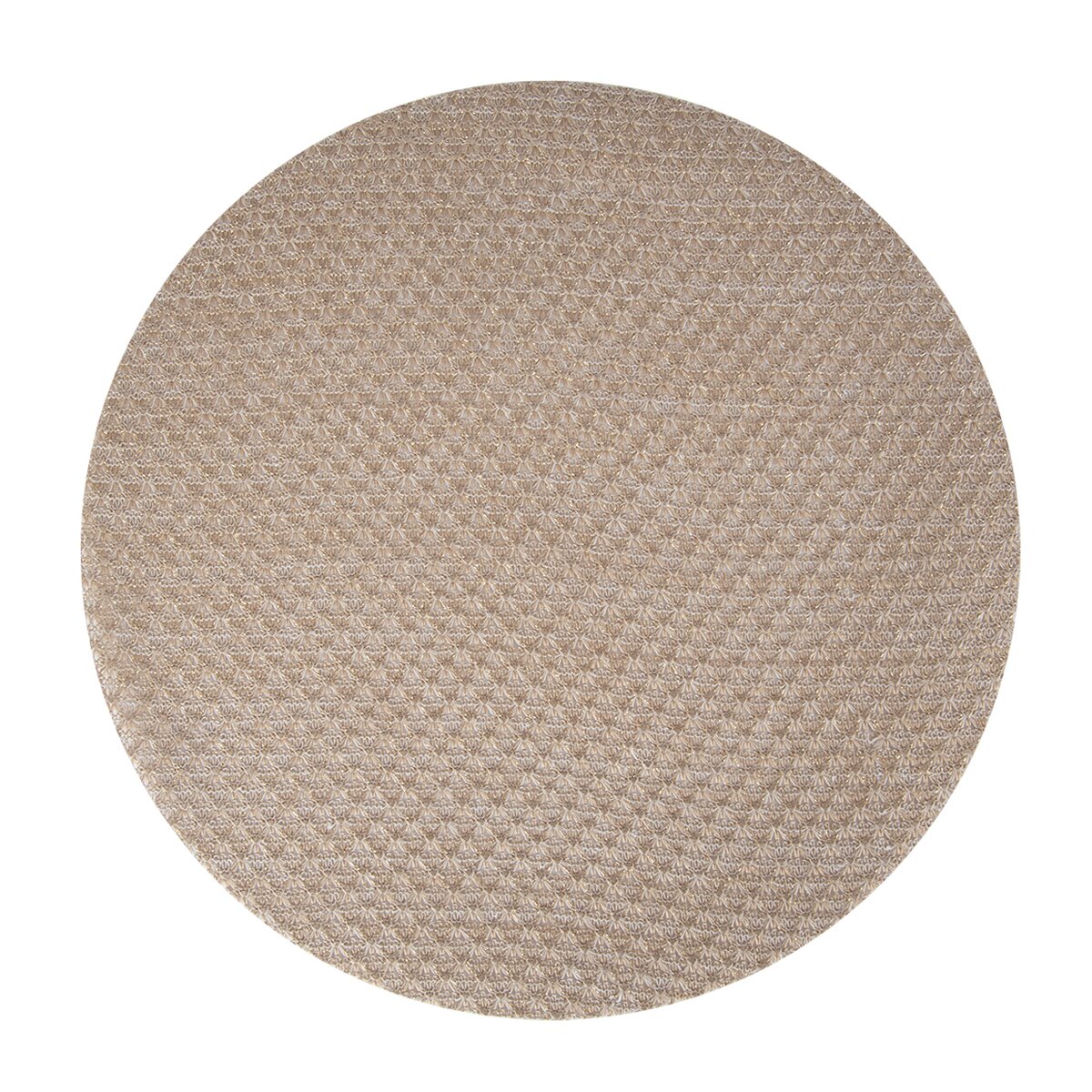 Kód produktu 728068Kulaté syntetické prostírání ve tlumeném měděném odstínu s jemnými zlatými nitkami, o průměru 38 cm, je určeno jako ochrana před pokládanými, horkými talíři a esteticky doplní běžné i slavnostní stolování.