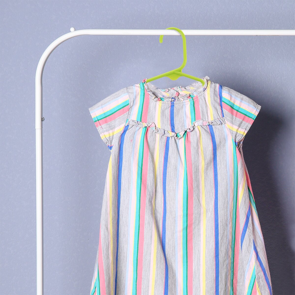 Ve skříni, v šatně nebo na štendru je vždy dobré mít zásobu ramínek. Tato malá ramínka jsou určena hlavně k uspořádání dětského oblečení, dívčích šatů, triček, košilí a halenek. V sadě najdete 3 bílá a 2 zelená ramínka z plastu PP, která umožňují zavěsit za tvarované výstupky také šaty na úzká ramínka nebo sukně za poutka.