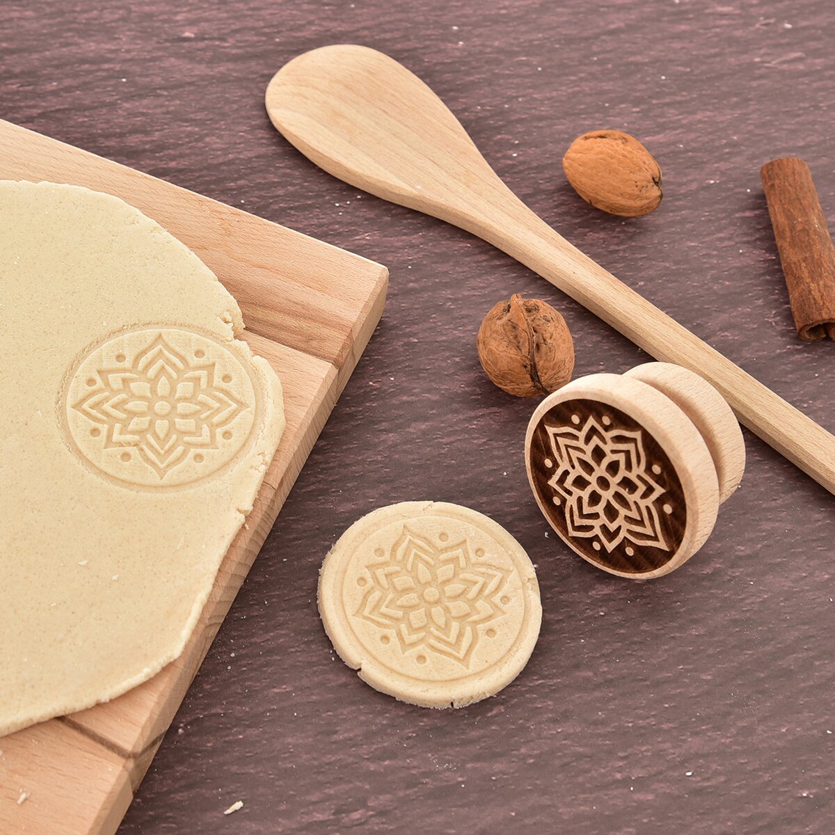Více informacíZábava pro velké i malé pekaře s originálním razítkem z bukového dřeva. Do vyváleného těsta, ideálně takového, které neobsahuje kypřící přísady nebo sodu, stačí otisknout razítko a kulatou vykrajovačkou průměru 5,5-6 cm vykrojit sušenku. Bude mít krásný plastický reliéf zobrazující harmonický motiv mandaly, který potěší vaše milované nejen na rodinné oslavě a na návštěvě, ale jen tak, u odpolední kávy nebo dobrého čaje.