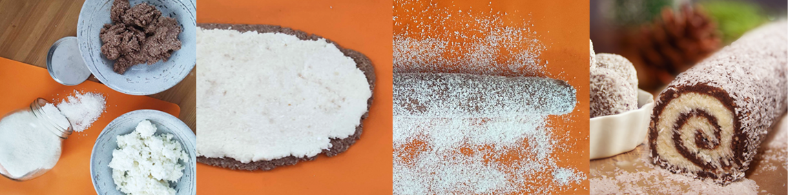 Jednoduché, efektní a vždy slavnostní. Stačí kokos, slazené kondenzované mléko a kakao. Vytvořte dvoubarevné válečky nebo roládu, kterou po vychlazení nakrájíte na suky.