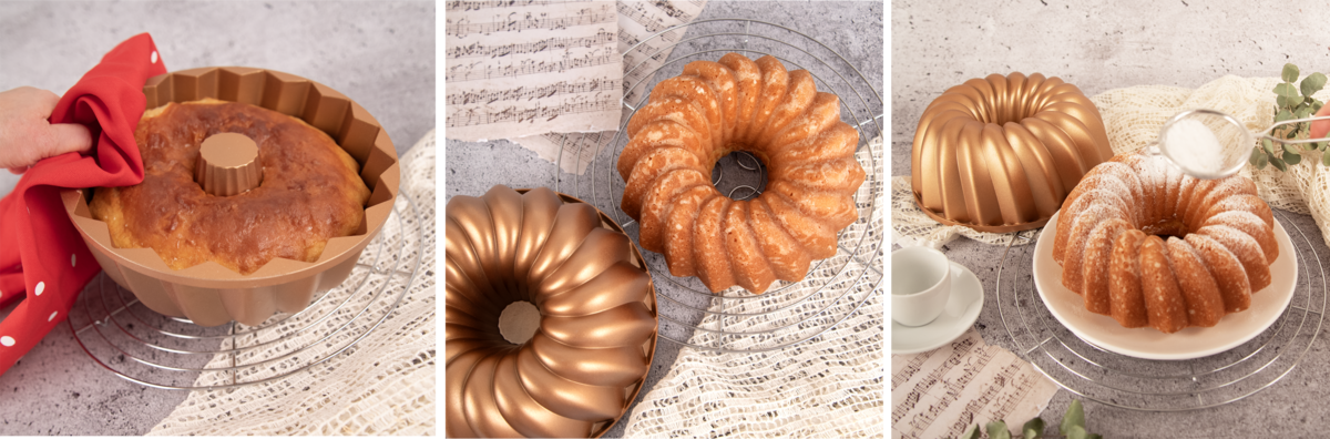 Do připravené formy nalijte těsto a pečte v předehřáté troubě přibližně 45–50 minut. Kontrolujte špejlí – pokud na ní neulpí lepivé těsto, je bábovka upečená.