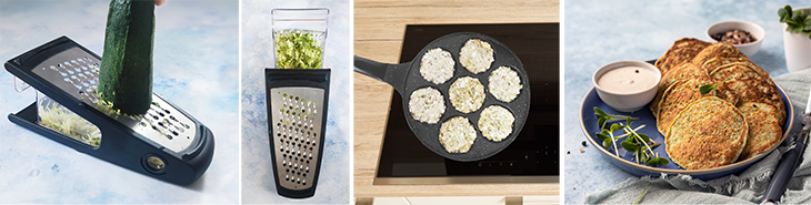 Tento vlastně ani brambory neobsahuje, ty jsou nahrazené šťavnatou cuketou, je plný bílkovin, vlákniny a hlavně šťavnaté cukety, která je hlavně v letní sezóně jednou z nejpoužívanějších surovin. Navíc se k jeho přípravě skvěle hodí struhadlo se zásobníkem, které strouhá oběma směry díky proti sobě postaveným otvorům. Je to efektivní, rychlé a strouhaná zelenina padá do transparentní misky, kterou stačí vytáhnout a vysypat do mísy.