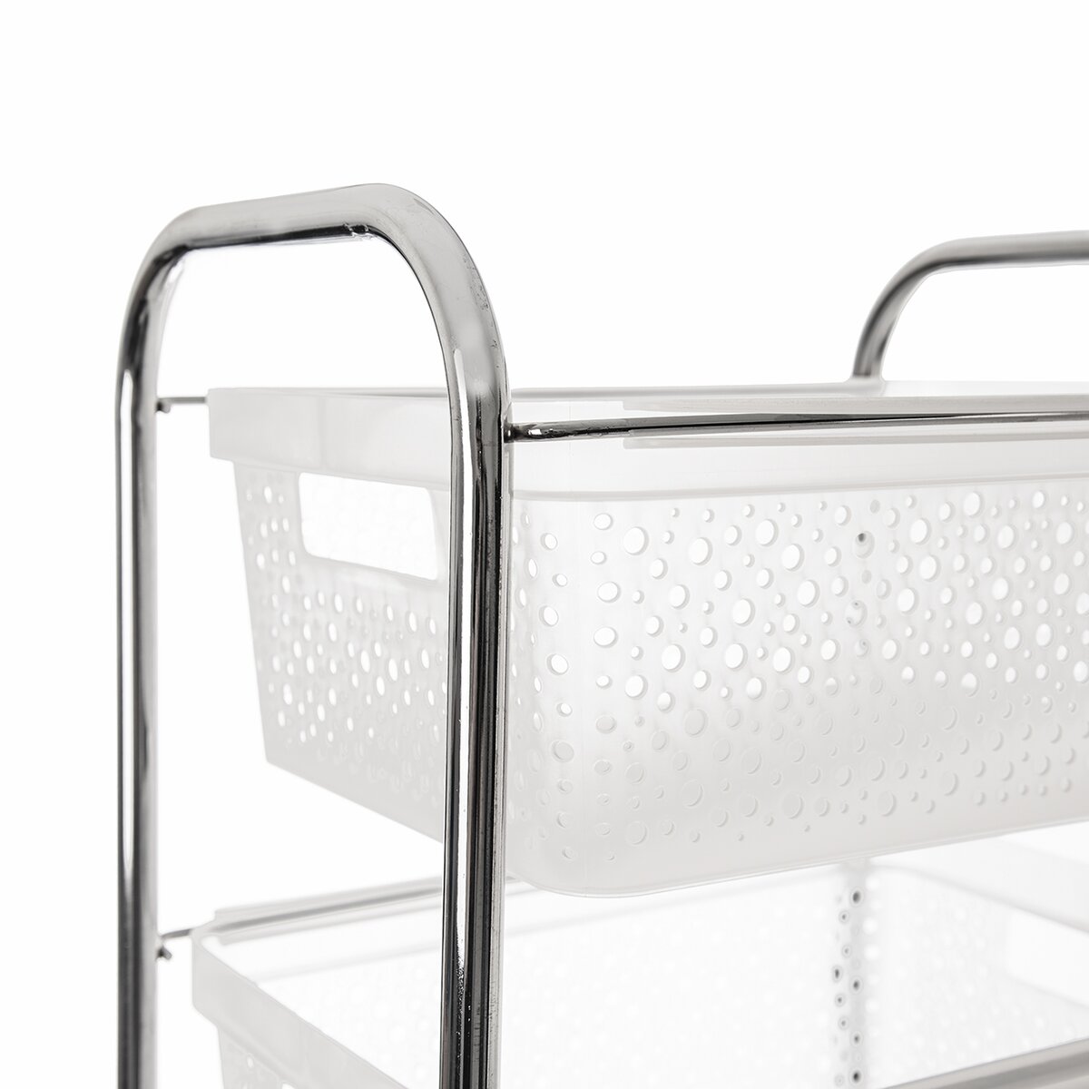 Kód produktu 812601Regál se 3 plastovými perforovanými zásuvkami a kovovým stojanem, ideální pro uložení věcí v kuchyni, koupelně, šatně i v provozovně.