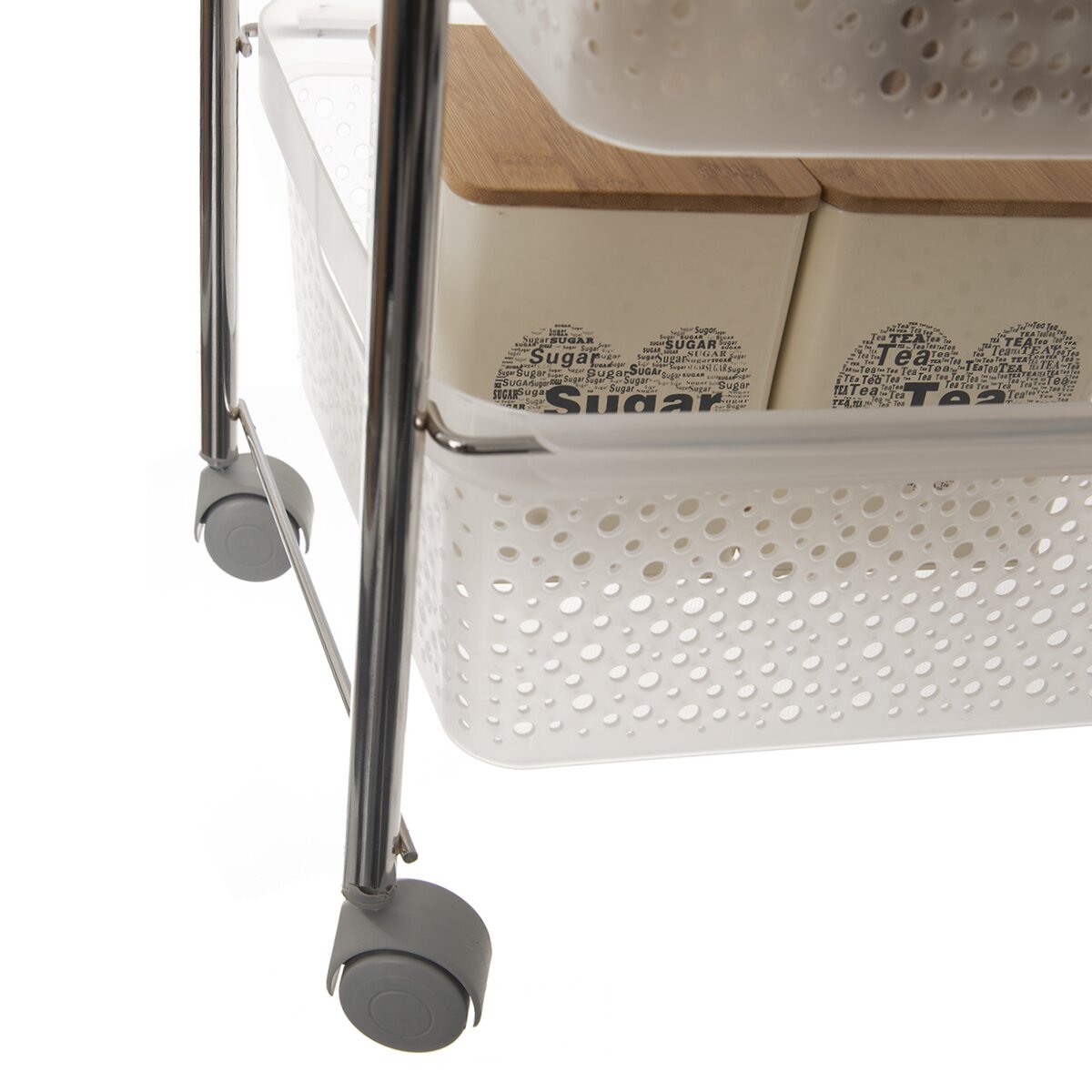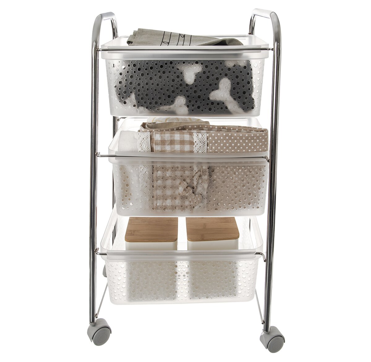 Díky rozměru 34x39x67 cm se vejde i do menších kuchyní na přehledné uložení potřeb na pečení, kuchyňských utěrek, dochucovadel, v koupelně schová drobnou drogerii, úklidové a čisticí pomůcky. Díky tomu, že je opatřen kolečky, bude šikovnou skříňkou s pojezdem např. i v kosmetických salónech nebo v kadeřnictví.