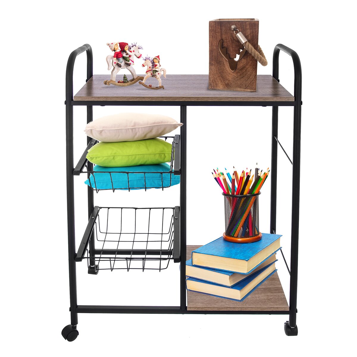 Kód produktu 812605Regál na kolečkách využijete v předsíni, chodbě, šatně, kuchyni, ale prakticky kdekoli v domácnosti. Díky kolečkům jej snadno kamkoli přemístíte. Dvě odkládací plochy, dva výsuvné košíky, 4 háčky. Materiál: dřevotříska s melaminem, kov s elektrickou povrchovou úpravou (ekologický způsob lakování). Nosnost 40 kg. Rozměry: 57x30x84 cm.