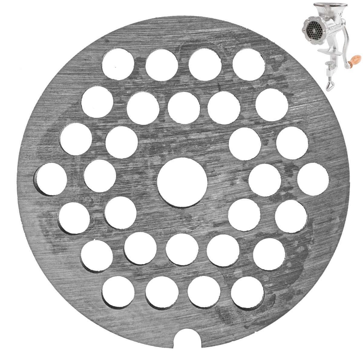 Kód produktu 180638Náhradní řezná deska do litinového mlýnku na maso PORKERT vel. 8. Průměr mlecích otvorů je 6 mm.