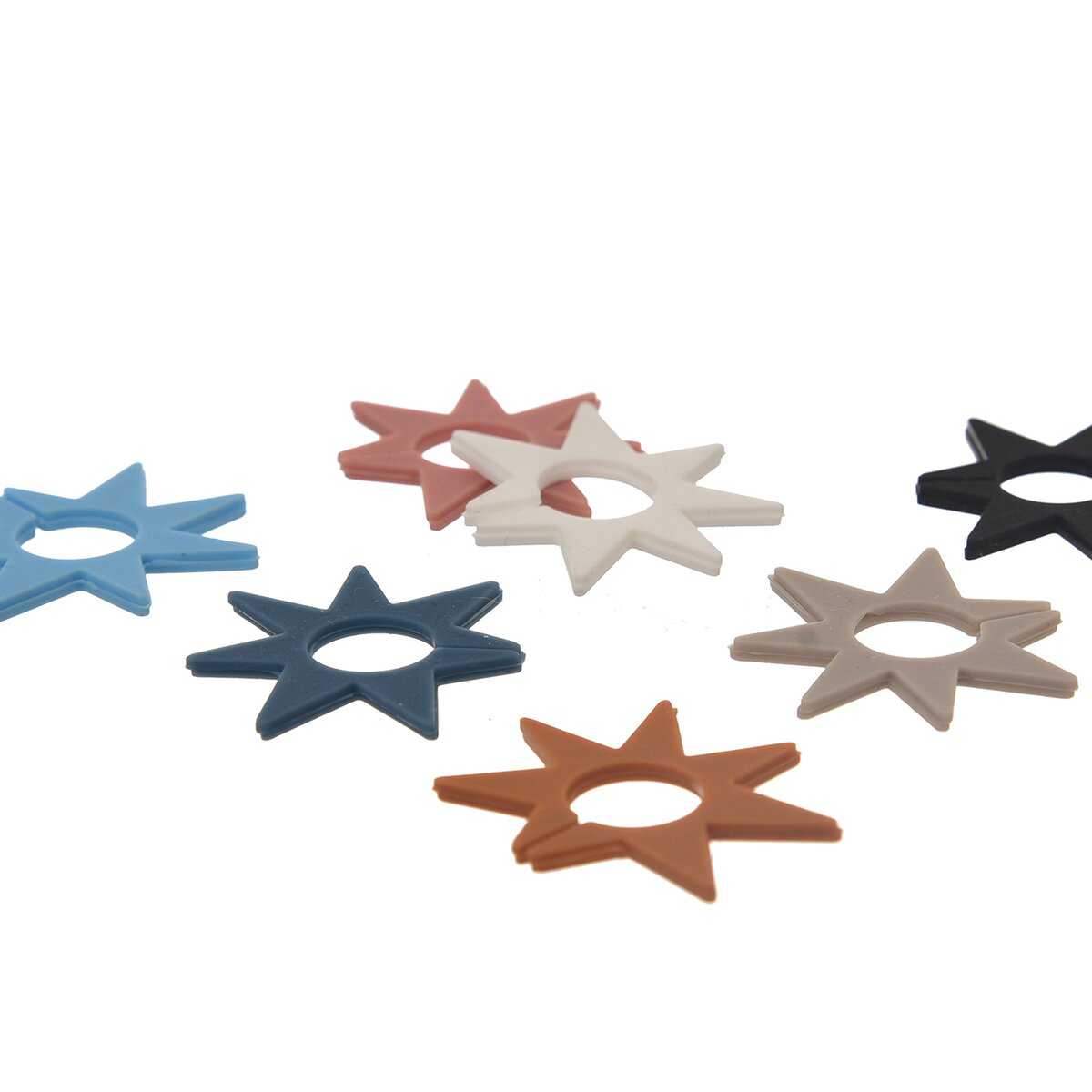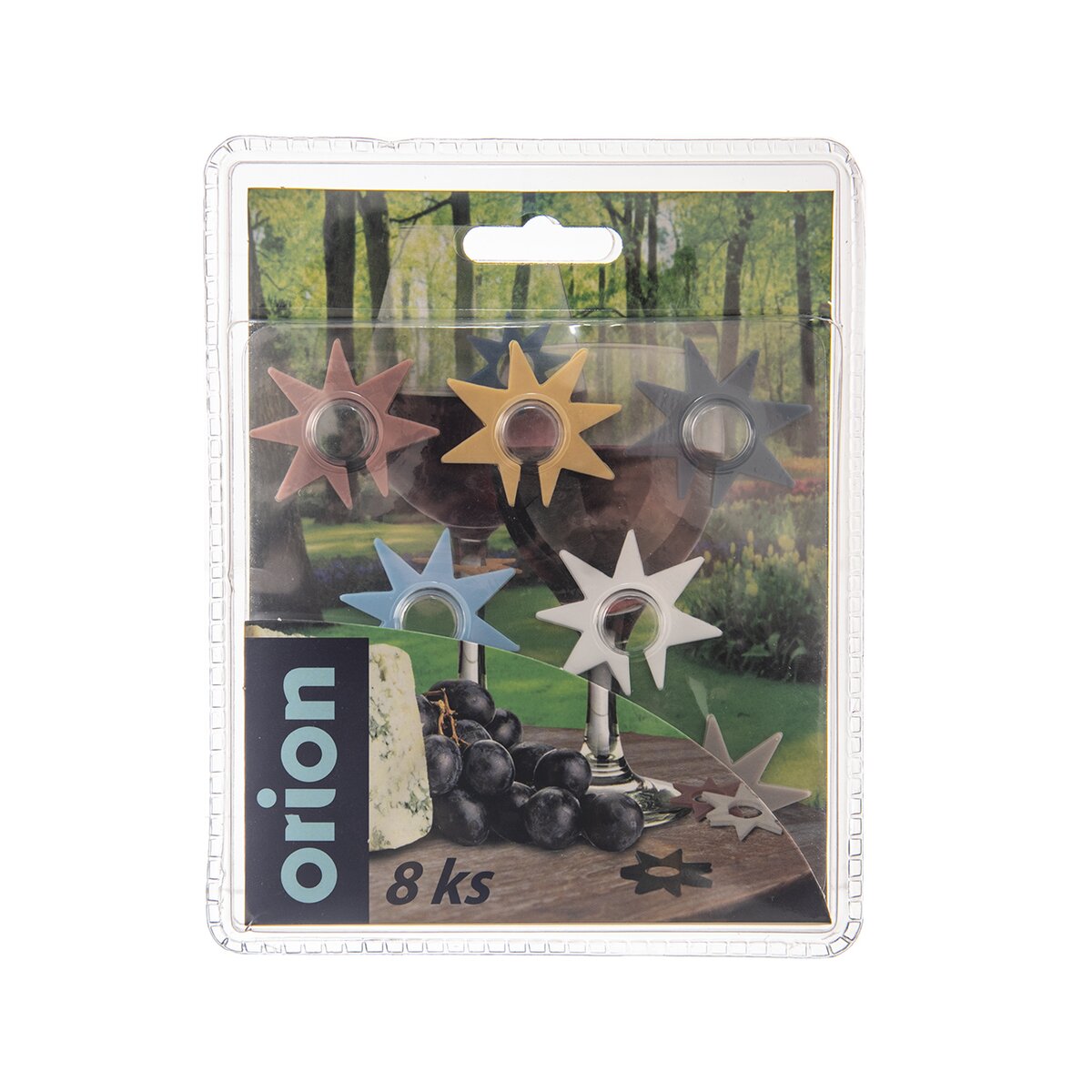 Kód produktu 832909Sada 8 kusů různobarevných silikonových rozlišovačů ve tvaru hvězdy, určených k rozpoznání sklenic mezi hosty, na rodinné oslavě i dětské párty.