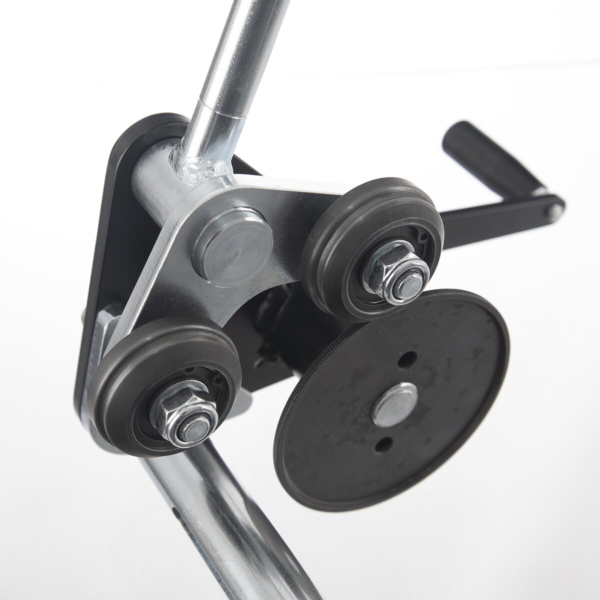 Strojek je vyroben z oceli s povrchovou úpravou (zinkování, práškový lak a černění), podložky jsou ze silonu PA6. Ochranu horní části pracovní desky, která by měla mít tloušťku max. do 4 cm, zajistí guma.