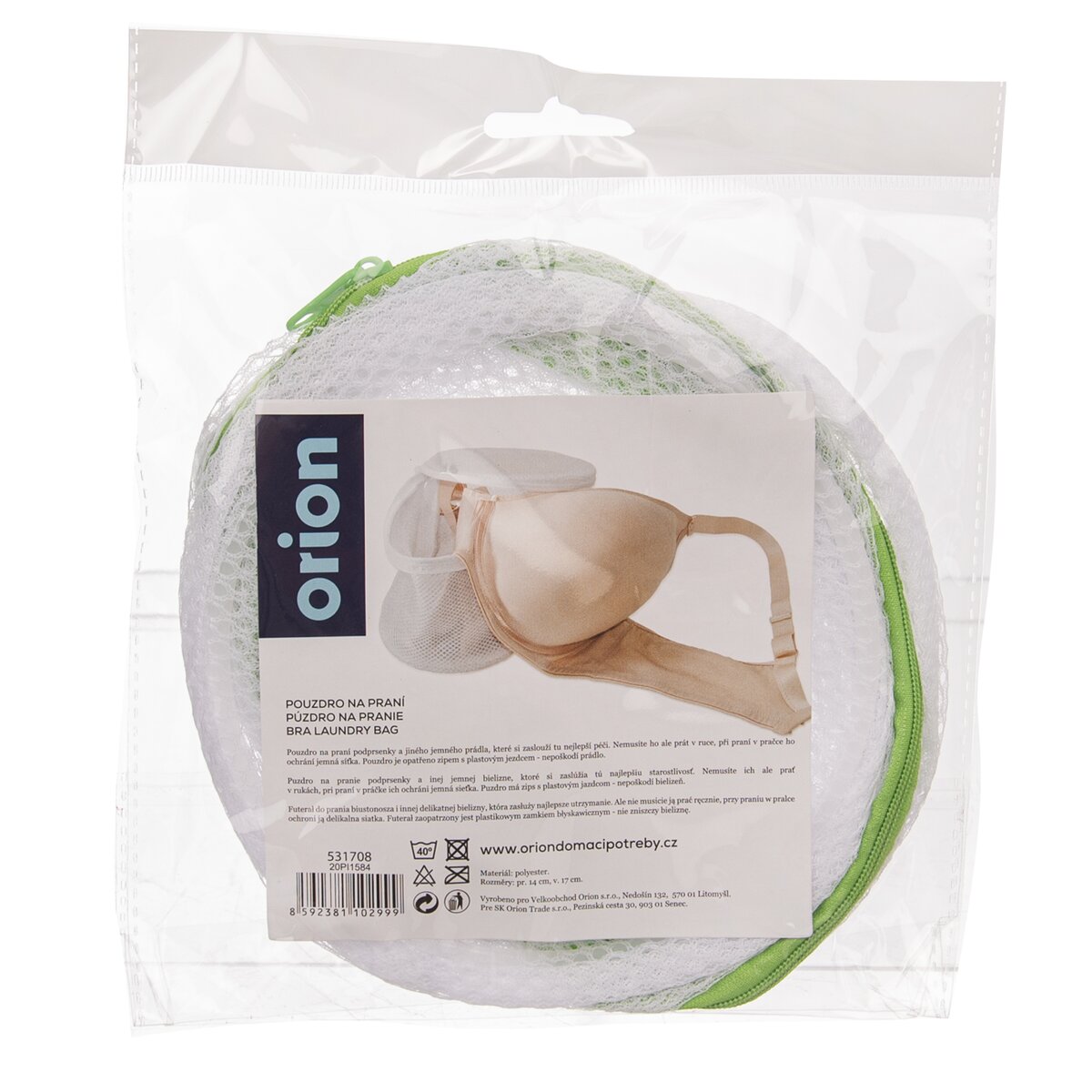 Kód produktu 531708Sáček na praní podprsenky a jiného jemného prádla o průměru 14 cm a délce 17 cm se zipem.