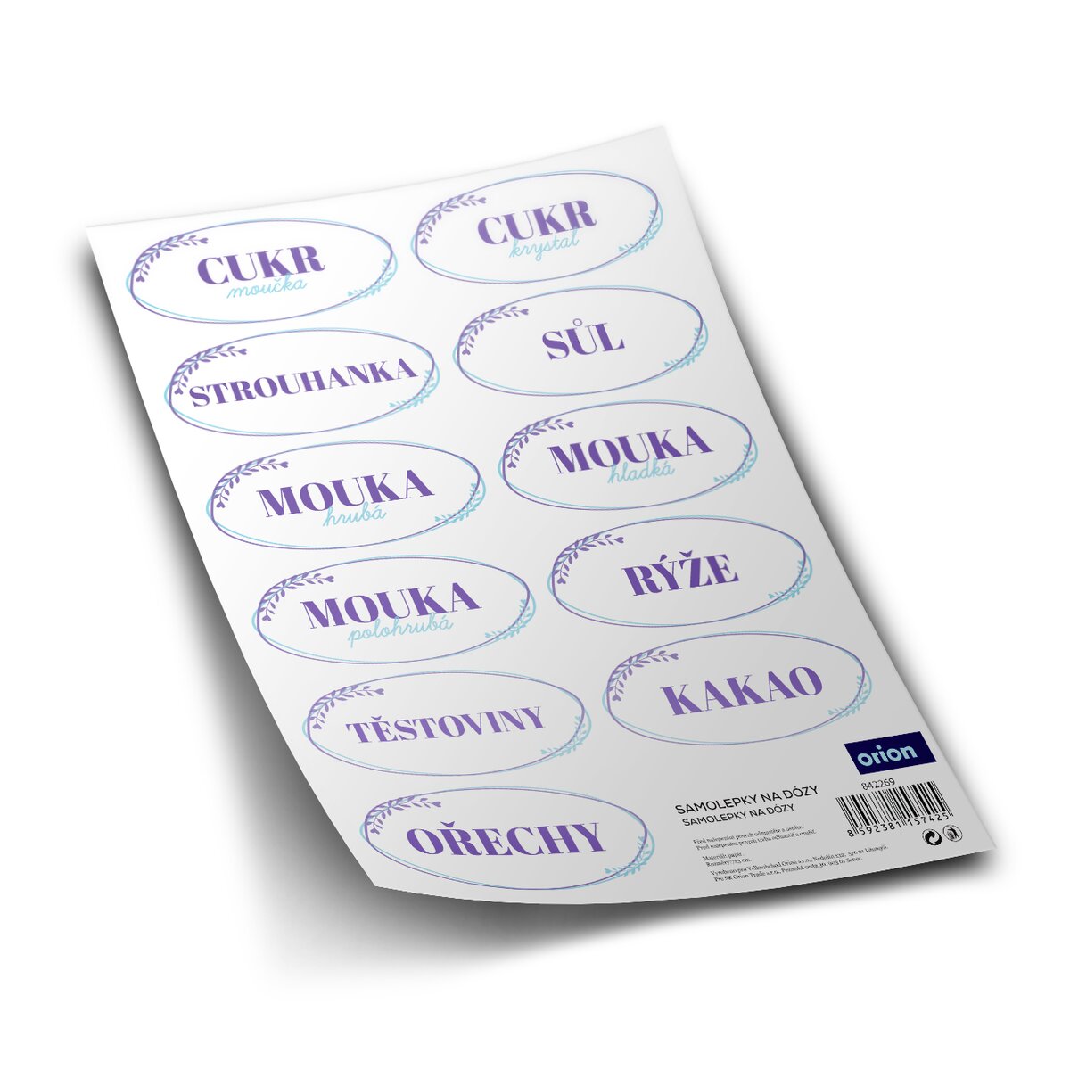 Bílomodré oválné nálepky ve vesnickém stylu se hodí na potravinové dózy a boxy. Každá z nich má již vlastní popisek. Najdete zde například cukr krystal a moučku, strouhanku, sůl, kakao nebo hladkou či polohrubou mouku.