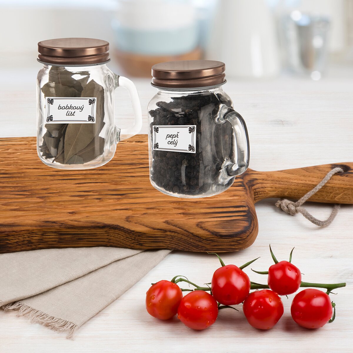 Kód produktu 842235Sada 23 kusů papírových obdélníkových samolepek na koření v retro stylu. Obsahuje 21 samolepek s popisem a dvě prázdné samolepky. Každá nálepka má rozměry 4,7×2,4 cm.