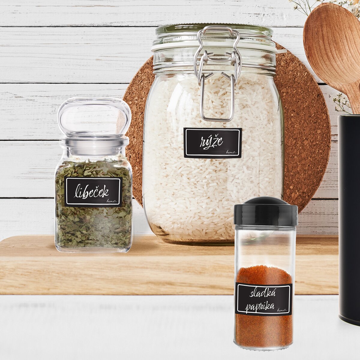 Nejenže tak rozlišíte dózy s cukrem, sypaným čajem, luštěninami a snídaňovými cereáliemi, ale také můžete popsat sklenice s domácími kompoty, nakládanými dobrotami i láhve s pálenkou či sirupem, které budou i pěkným hand made dárkem.