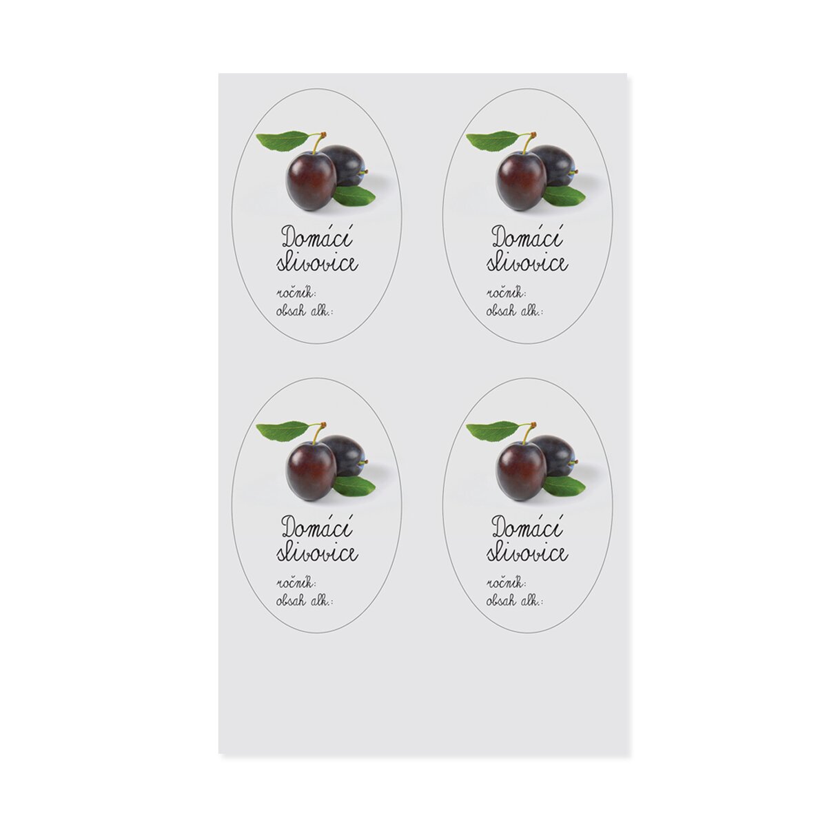 Kód produktu 842524Sada 12 kusů papírových samolepek s obrázkem a popisem DOMÁCÍ SLIVOVICE. Rozměr jedné oválné samolepky je 5x7,5 cm.