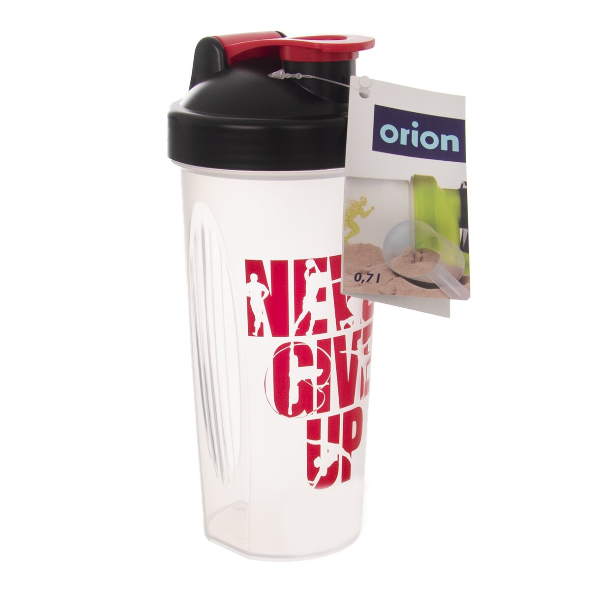 Kód produktu 125989Plastový šejkr na nápoje o objemu 0,7 l s uzavíratelným víčkem, praktickou nálevkou a odměrkou do 600 ml.