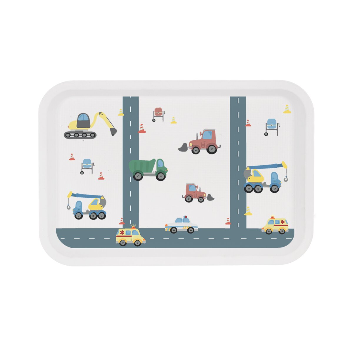 Kód produktu 155032Veselý dětský servírovací tác z kolekce AUTA z odolného plastu PP, ideální pro malé strávníky od 3 let, s hravým dekorem, vhodný na každodenní používání.