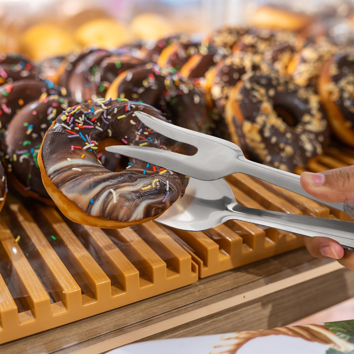 Nerezové kleště jsou šikovným pomocníkem při hygienickém servírování pečiva, zákusků i cukroví. Jak z prodejního pultu, v bufetu či pekárně, tak i doma, při podávání kávy a moučníku hostům.