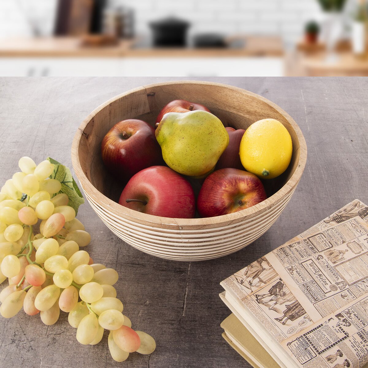 Kód produktu 120286Mísa z mangového dřeva s jemný dekorem vodorovných linek, o průměru 24 cm, se skvěle hodí pro servírování suchých plodů, sušeného ovoce, je krásnou dekorací.