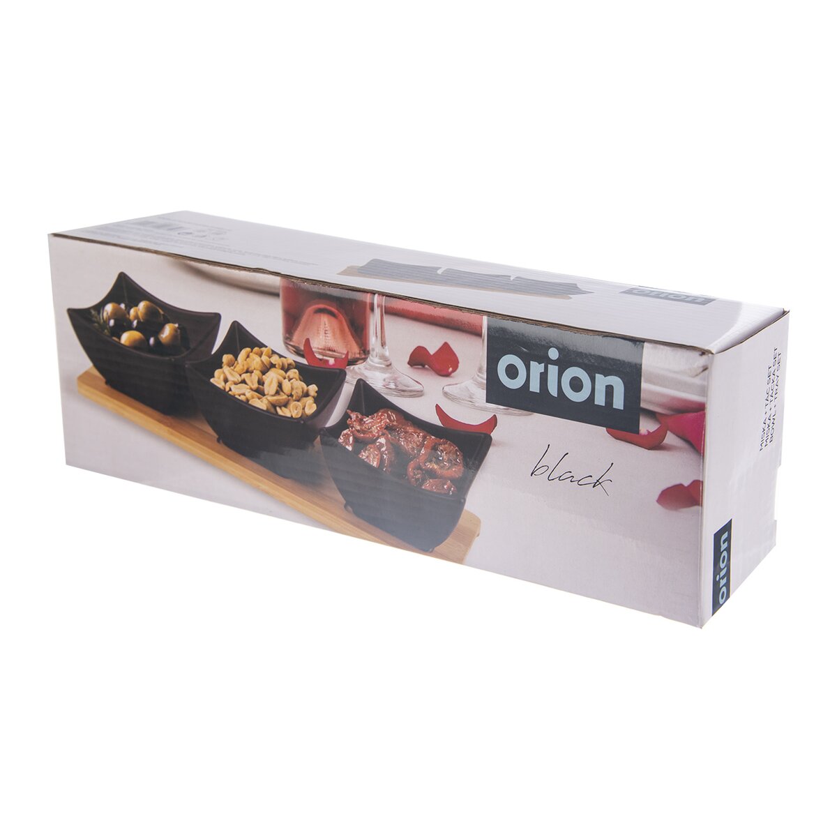Kód produktu 129202Servírovací set 3 porcelánových misek BLACK na bambusovém tácu je určen k podávání drobných pochutin, ořechů, sýrů, oliv, krekrů apod.