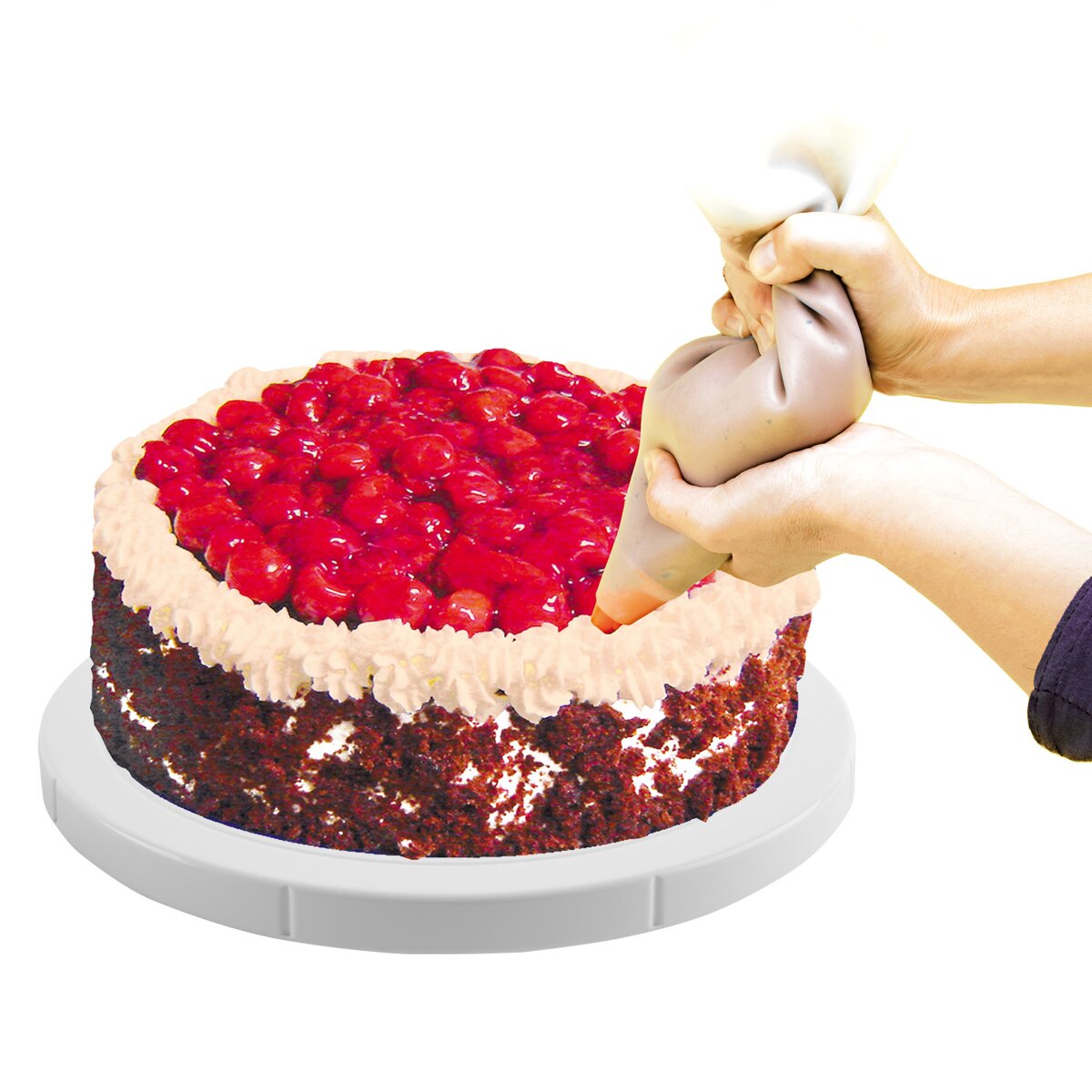 S tímto otočným stojanem bude zdobení vašich dezertů úplná hračka. Má průměr 27 cm a je vyrobený z kvalitního plastu. Během vyhlazování marcipánových hmot, výroby máslových nebo nahých dortů a jejich zdobení je možné s tácem otáčet, díky čemuž bude finální tuning jednodušší.