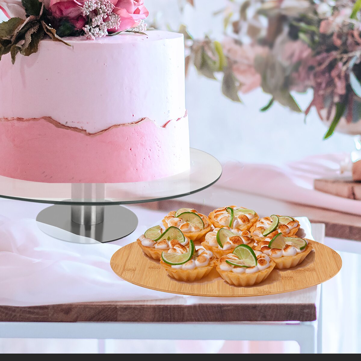 Kód produktu 122979Otočný stojan průměru 35 cm z bambusového dřeva pomůže stylově servírovat pizzu, zákusky i chlebíčky, pomůže s potahováním dortů a jejich zdobením.