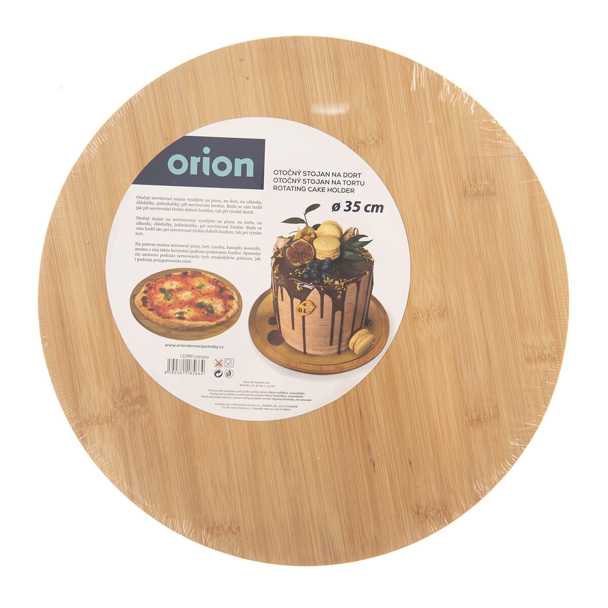 Kód produktu 122991Otočný stojan o průměru 35 cm je vyroben z bambusového dřeva. Pomůže stylově servírovat pizzu, zákusky i chlebíčky, pomůže s potahováním korpusů a zdobením dortů.
