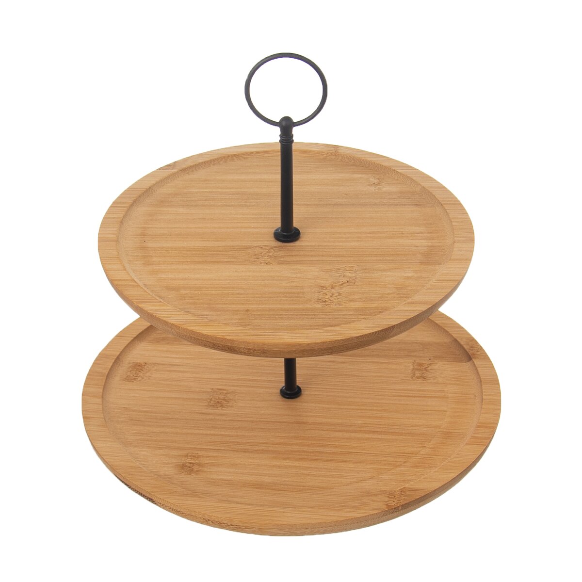 Kód produktu 540593Dvoupatrový stojan z kovu a bambusového dřeva určený k servírování dezertů a slaných pochutin. Kulaté tácy mají průměr 21 a 25 cm.