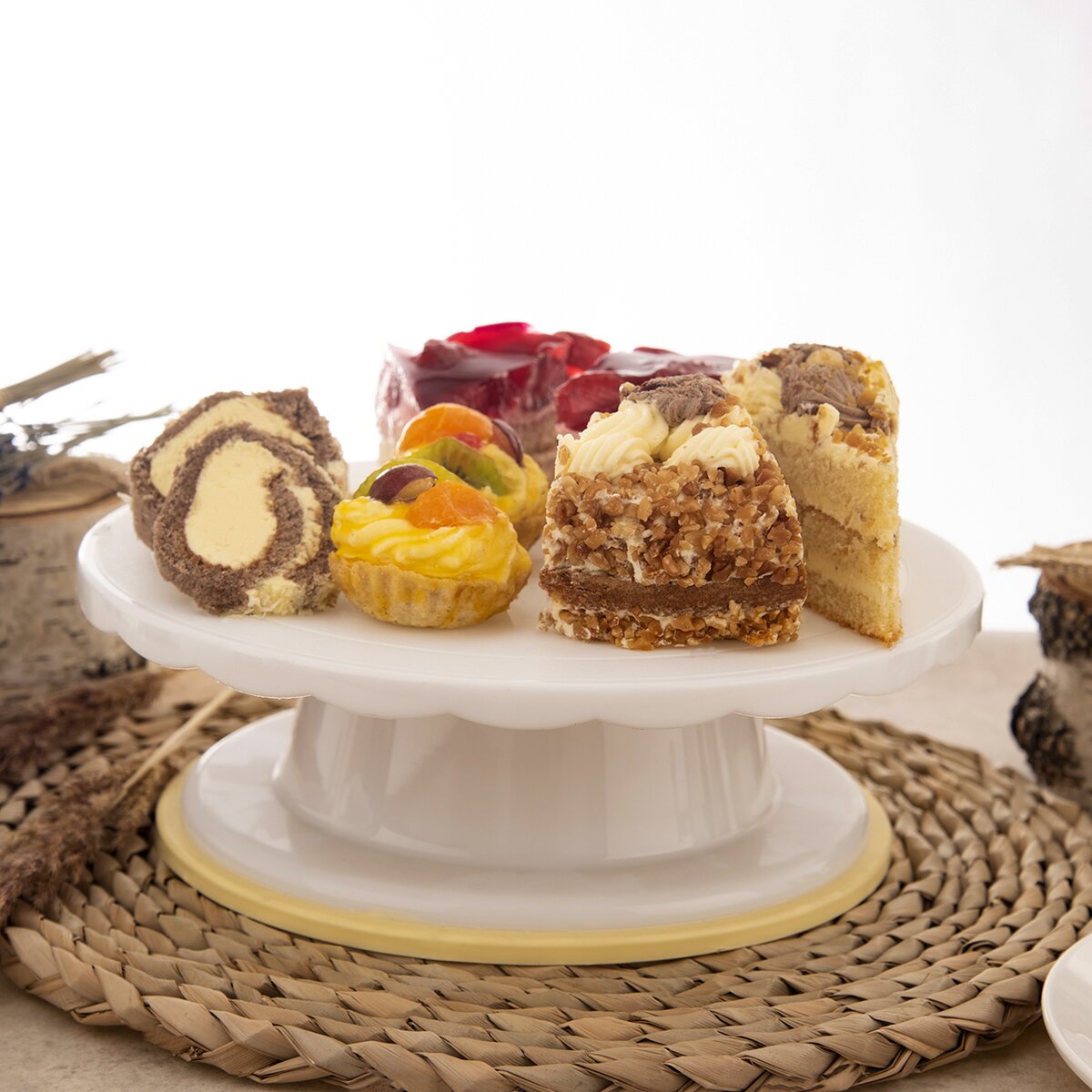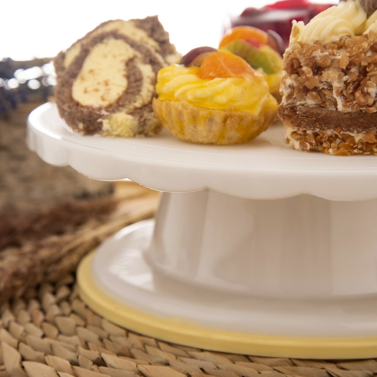 S tímto otočným stojanem bude zdobení vašich dezertů úplná hračka. Má průměr 28 cm a jeho podnos i vyšší podstavec jsou vyrobené z kvalitního plastu PP a TPR.