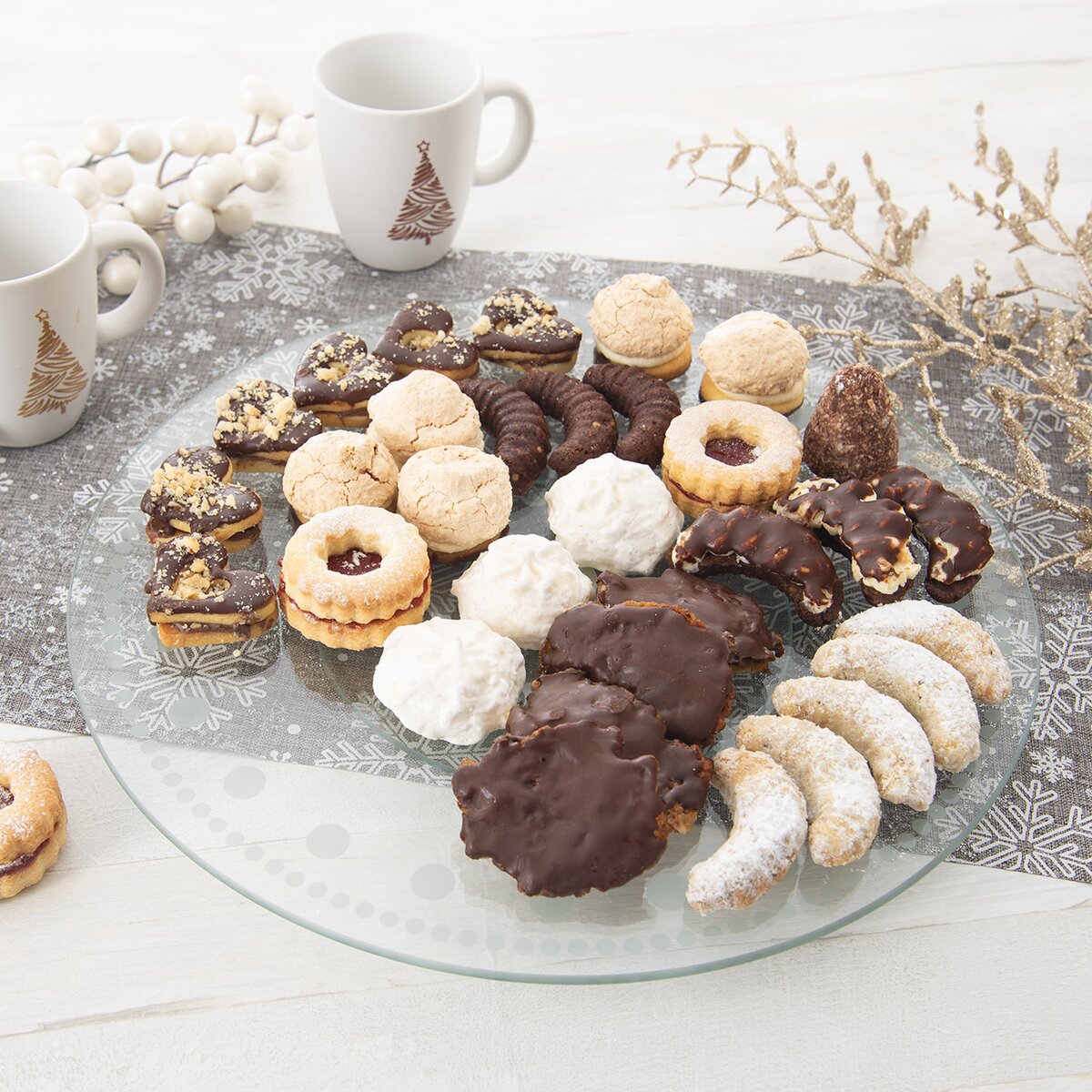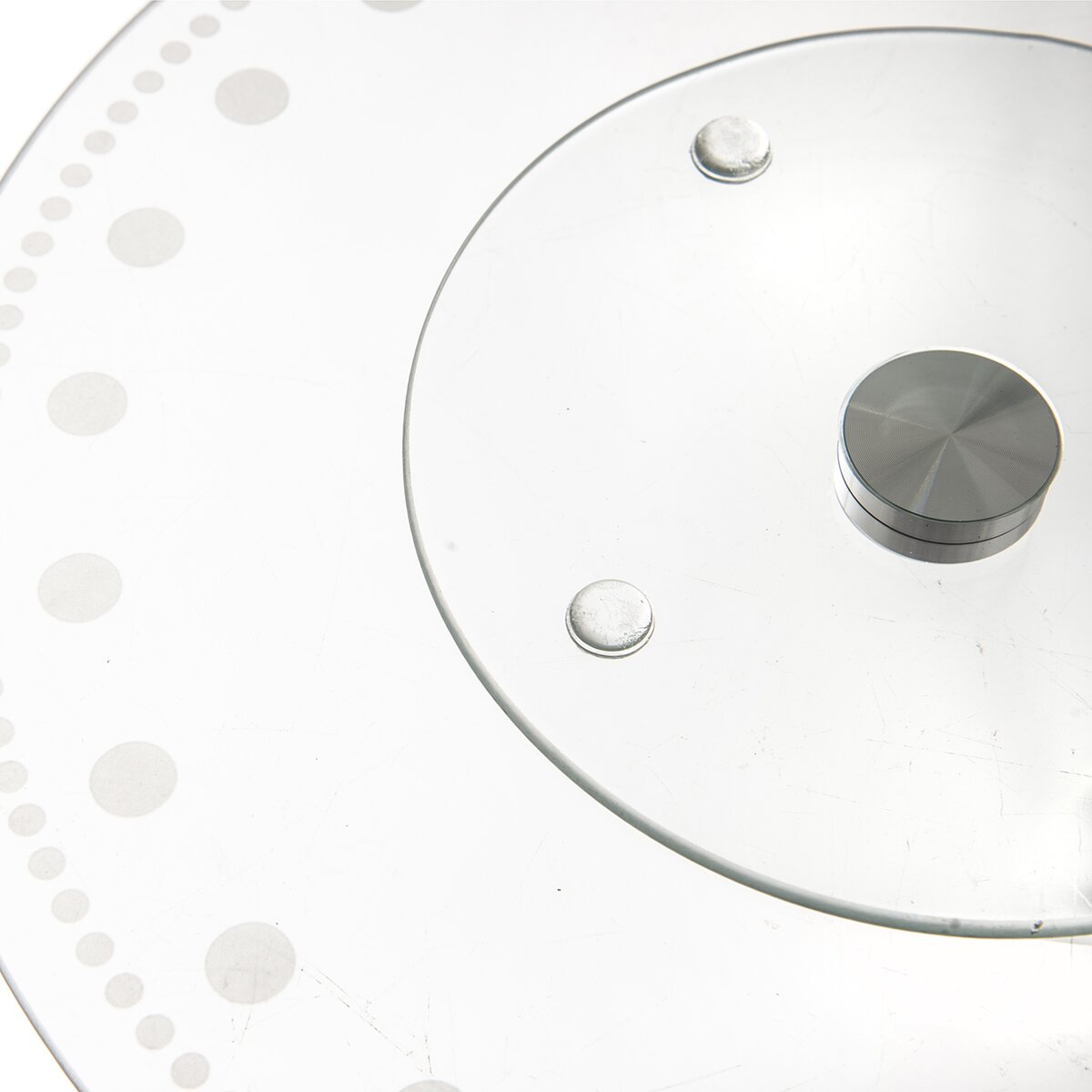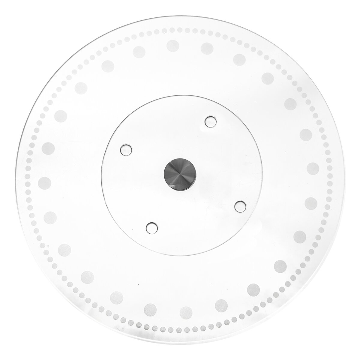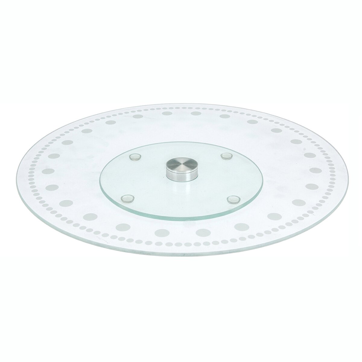 Kód produktu 122980Otočný skleněný servírovací stojan průměru 30 cm s dekorem teček je určen na přípravu a servírování dortů, zákusků, cukroví i jednohubek a chlebíčků. Je opatřen protiskluzovými podložkami.