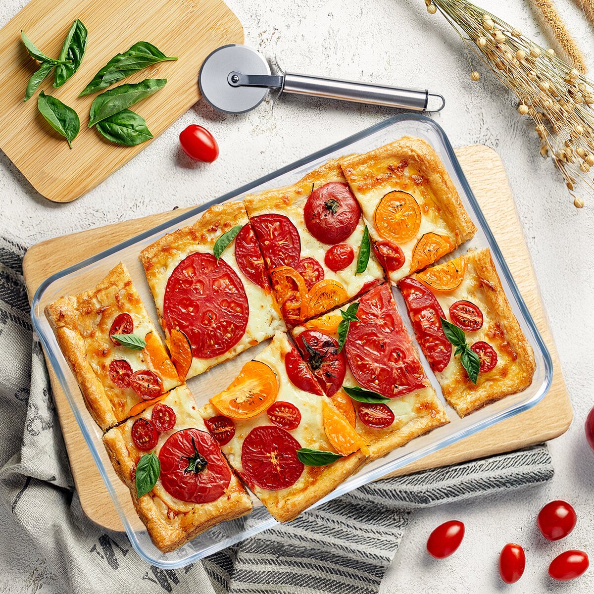 Borosilikátové sklo odolné vůči teplotám od -40 °C do +300 °C zajišťuje dlouhou životnost, lze jej použít i do mikrovlnné trouby, mrazáku, klasické trouby i mrazničky.