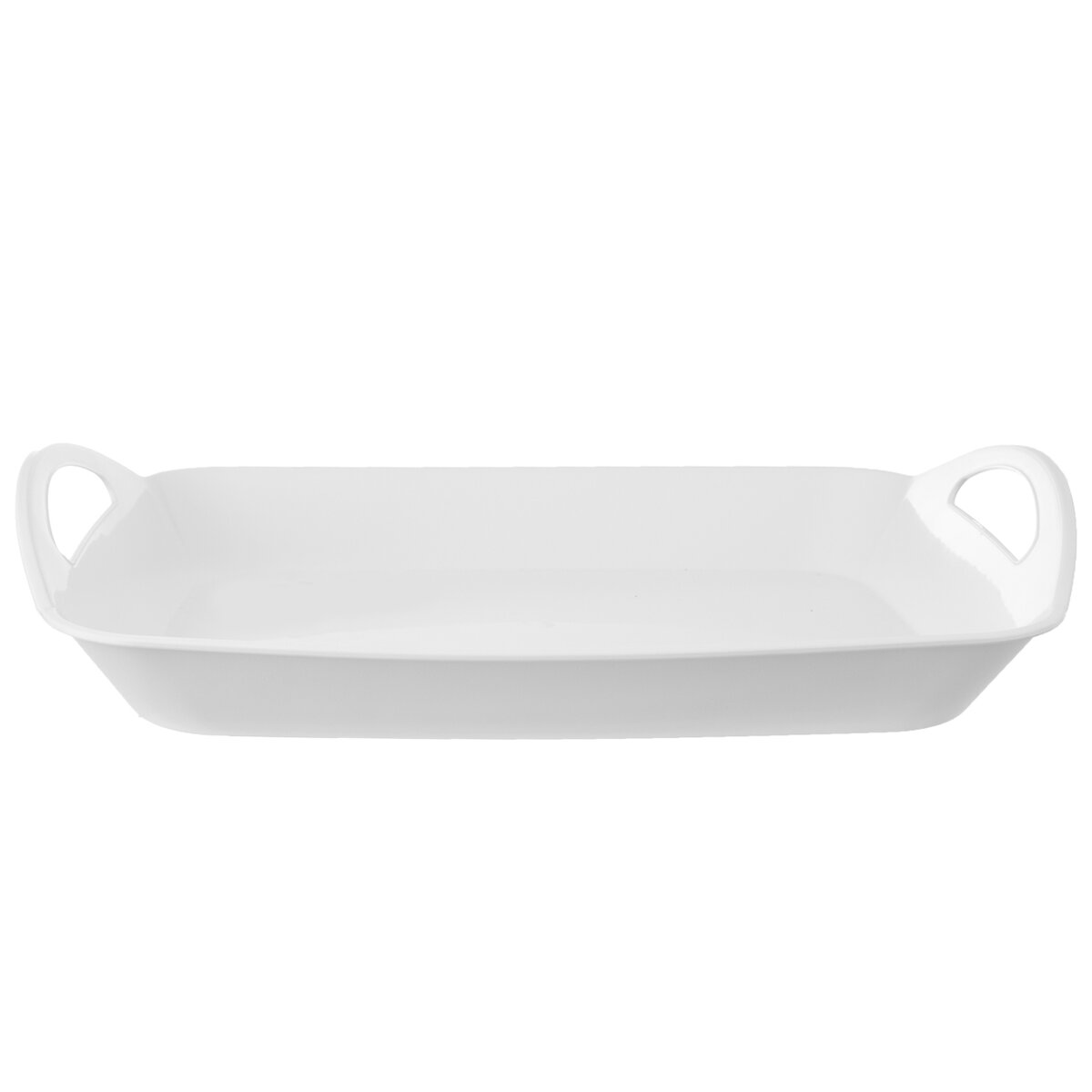 Kód produktu 153833Hluboký bílý plastový tác s uchy o rozměru 43,5x31,5x5 cm slouží k přenášení nápojů a pokrmů.