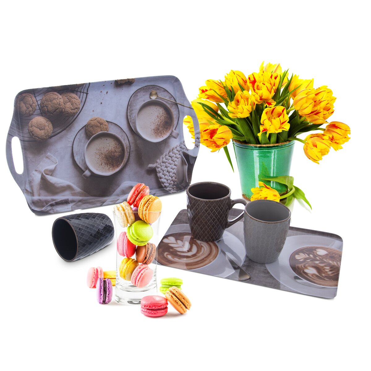 Kód produktu 153800Tác s uchy a s dekorem. Materiál: melamin. Assort dekorů. Rozměry: 38x23 cm.