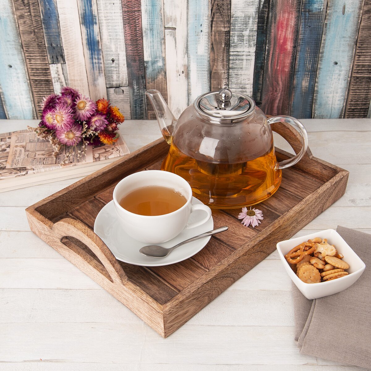 Kód produktu 153862Stylový tác z mangového dřeva, o velikosti 35,5x25,5x7,5 cm, je ideálním pomocníkem při servírování občerstvení, kávy i čaje.