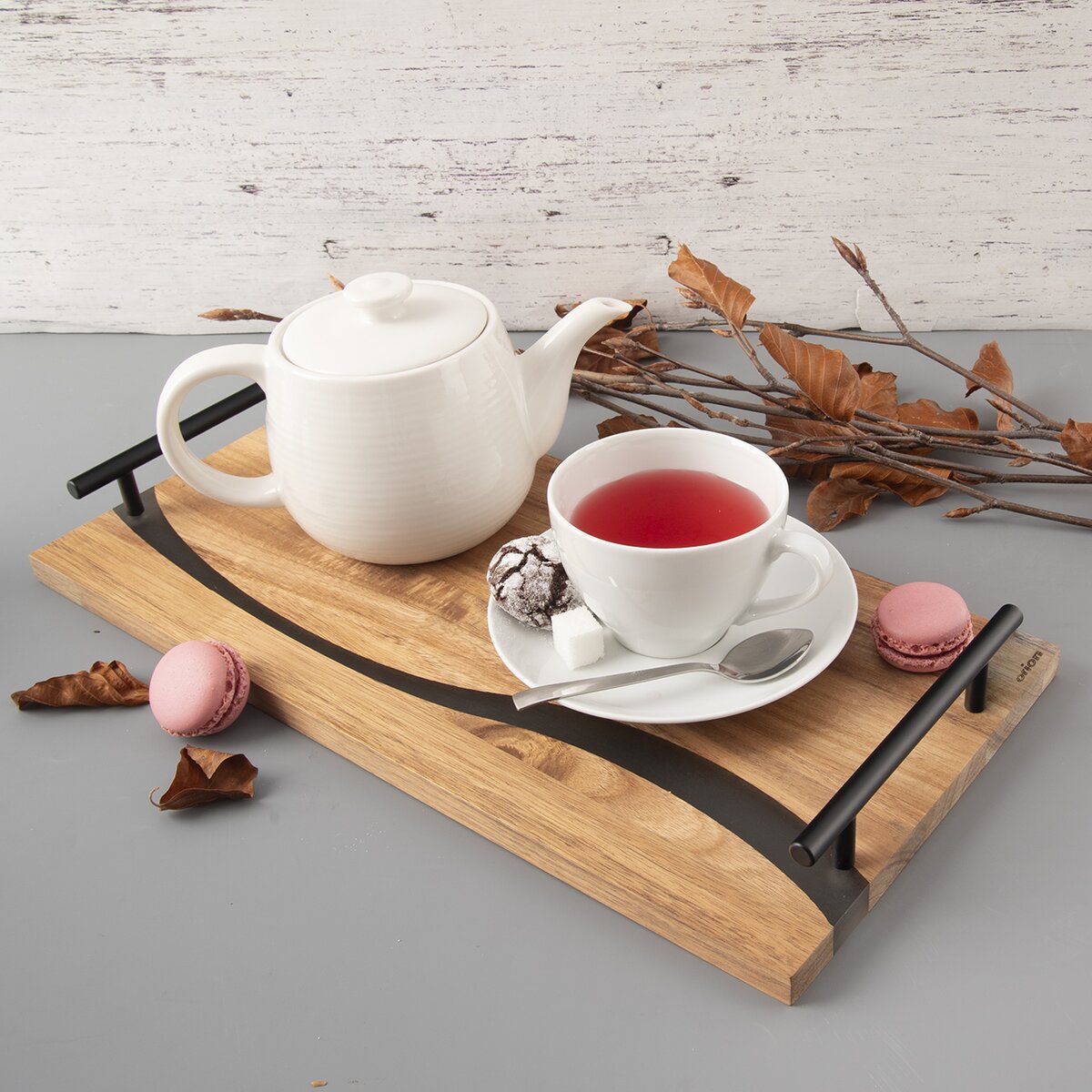 Kdo má slabost pro originální, stylové kousky, ten rád sáhne i po krásném tácu, který navíc doplňují po stranách kovové rukojeti. Lze na něm přenášet, servírovat odpolední kávu, čaj nebo voňavou domácí bábovku. Bude ozdobou každého stolu, ať už je to rodinná snídaně nebo posezení se sklenkou vína s přáteli.