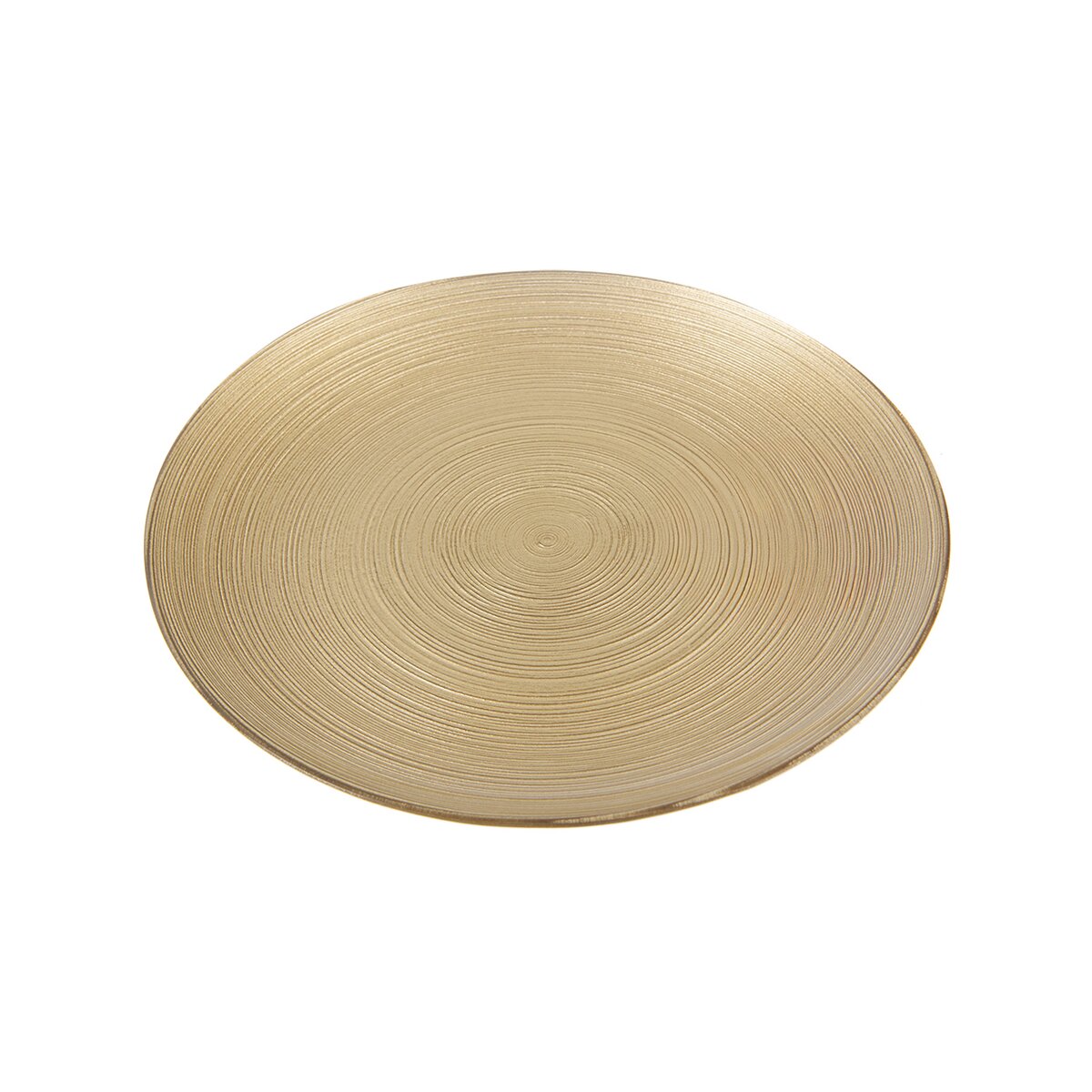 Kód produktu 129581Servírovací talíř o průměru 21 cm se zlatým nástřikem a vroubky ze spodní strany se hodí k podávání slavnostního menu, dezertů i kanapek. Zaujme i jako chic dekorace.