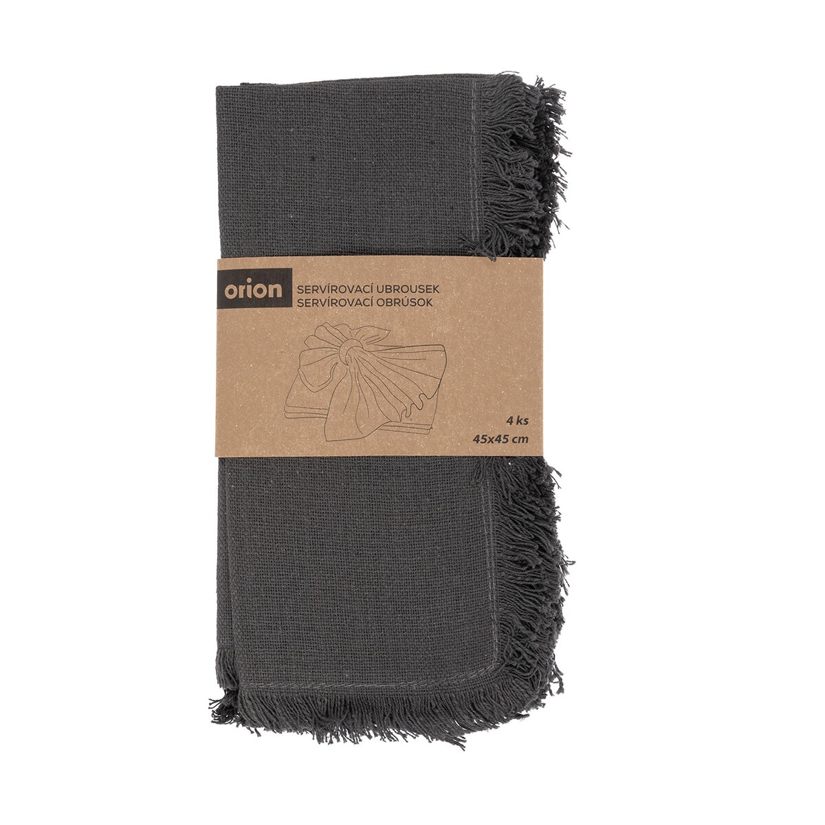 Kód produktu 842366Opakovaně použitelné ubrousky o rozměru 45x45 cm v sadě 4 kusů mají šedou barvu. Jsou vyrobeny z bavlny a okraj tvoří jemné třásně. Hodí se k doladění každodenní i slavnostní tabule.