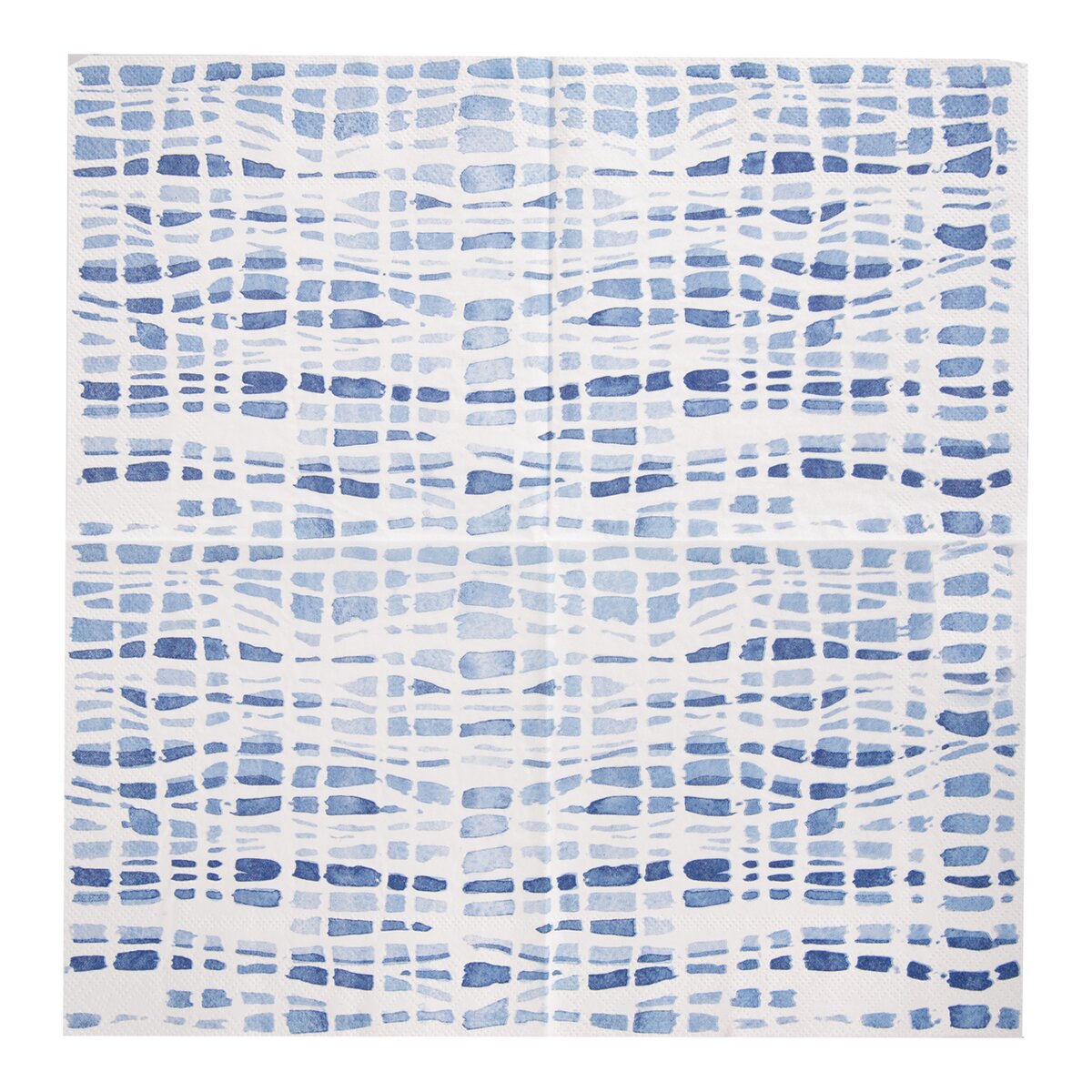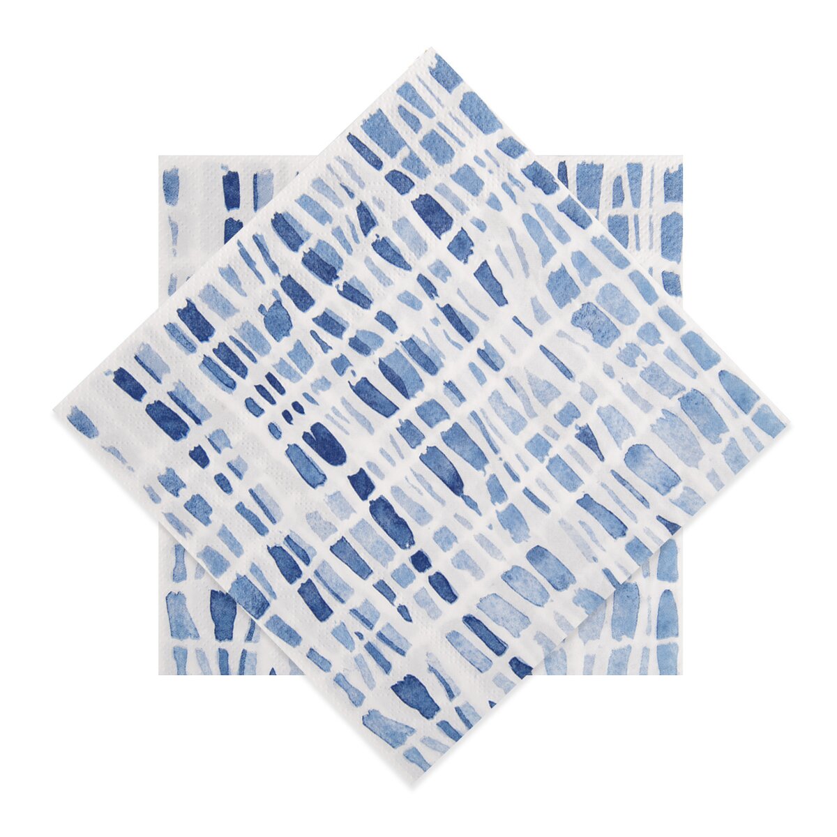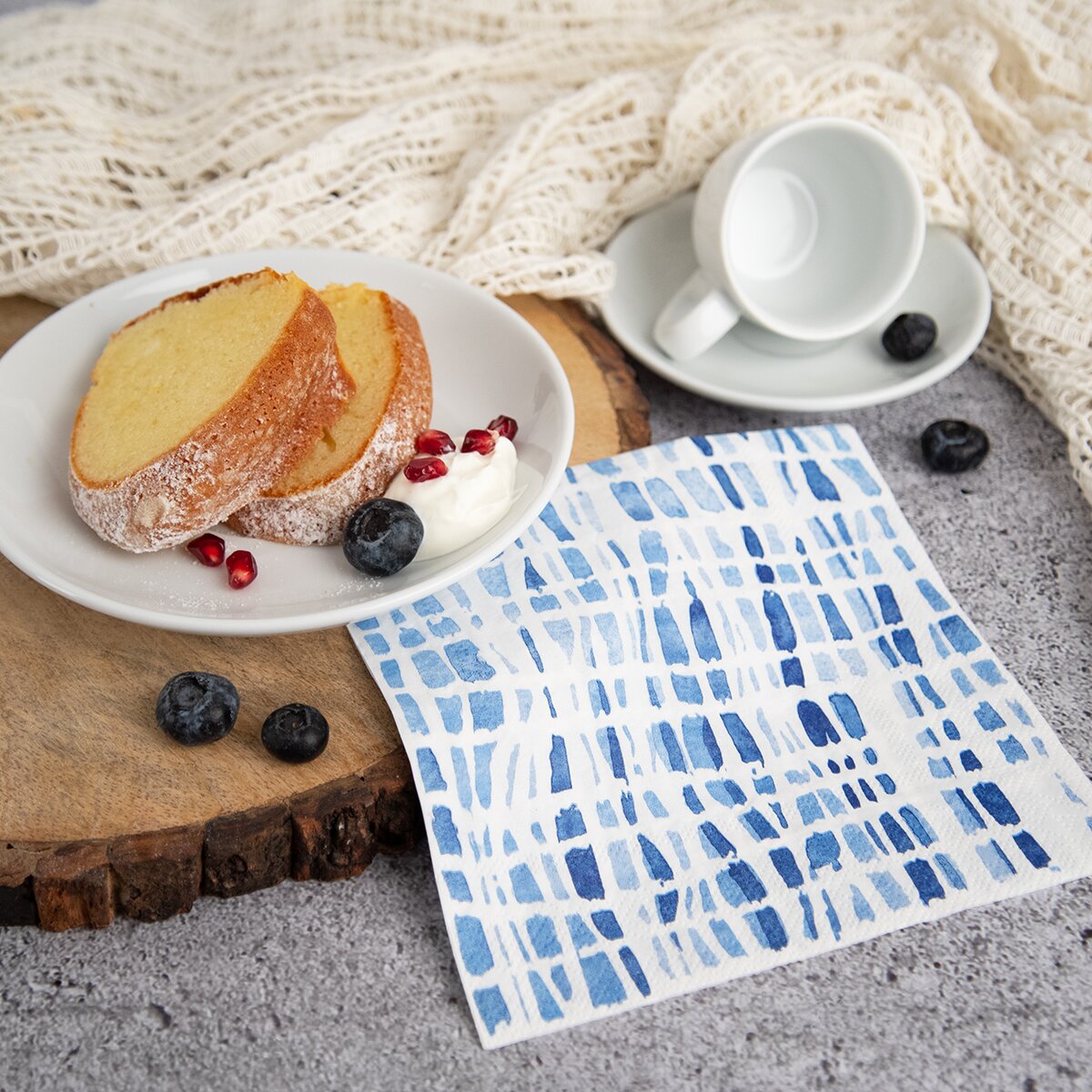 Tyto třívrstvé papírové ubrousky mají stylový modrý potisk, částečně připomínající batiku.