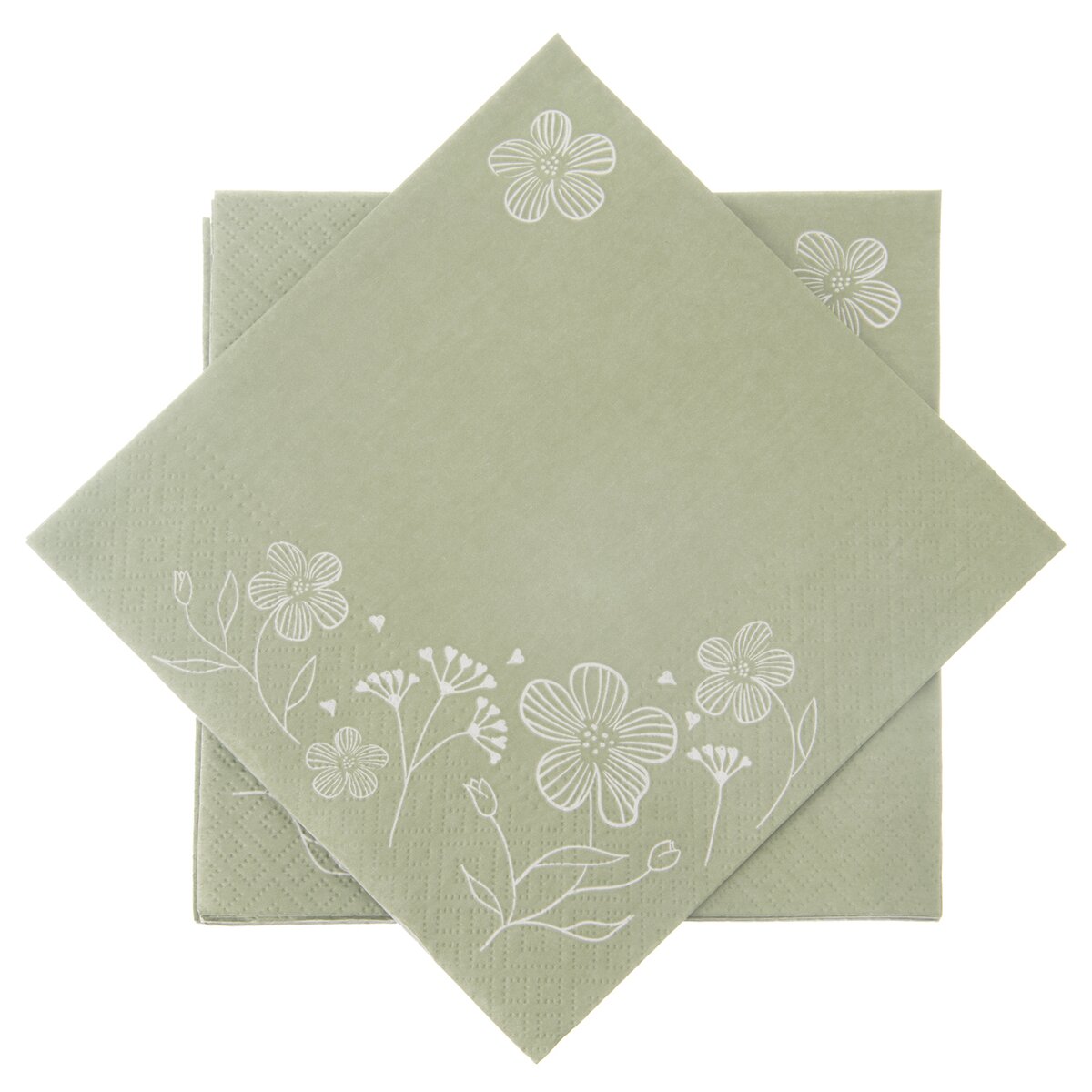 Decentní ubrousky v tlumeném zeleném odstínu jsou zdobeny jemným květinovým dekorem. Ten vznikl v dílně Orion designéru.