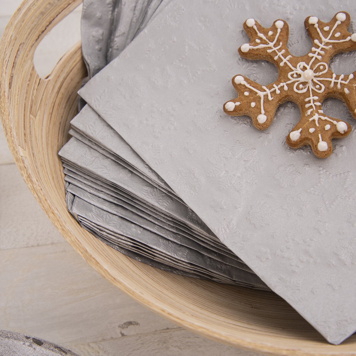 Ubrousek s plastickým dekorem. Perleťový, šedivý. Sada 20 ks. Materiál: papír. Rozměry: 33x33x cm.