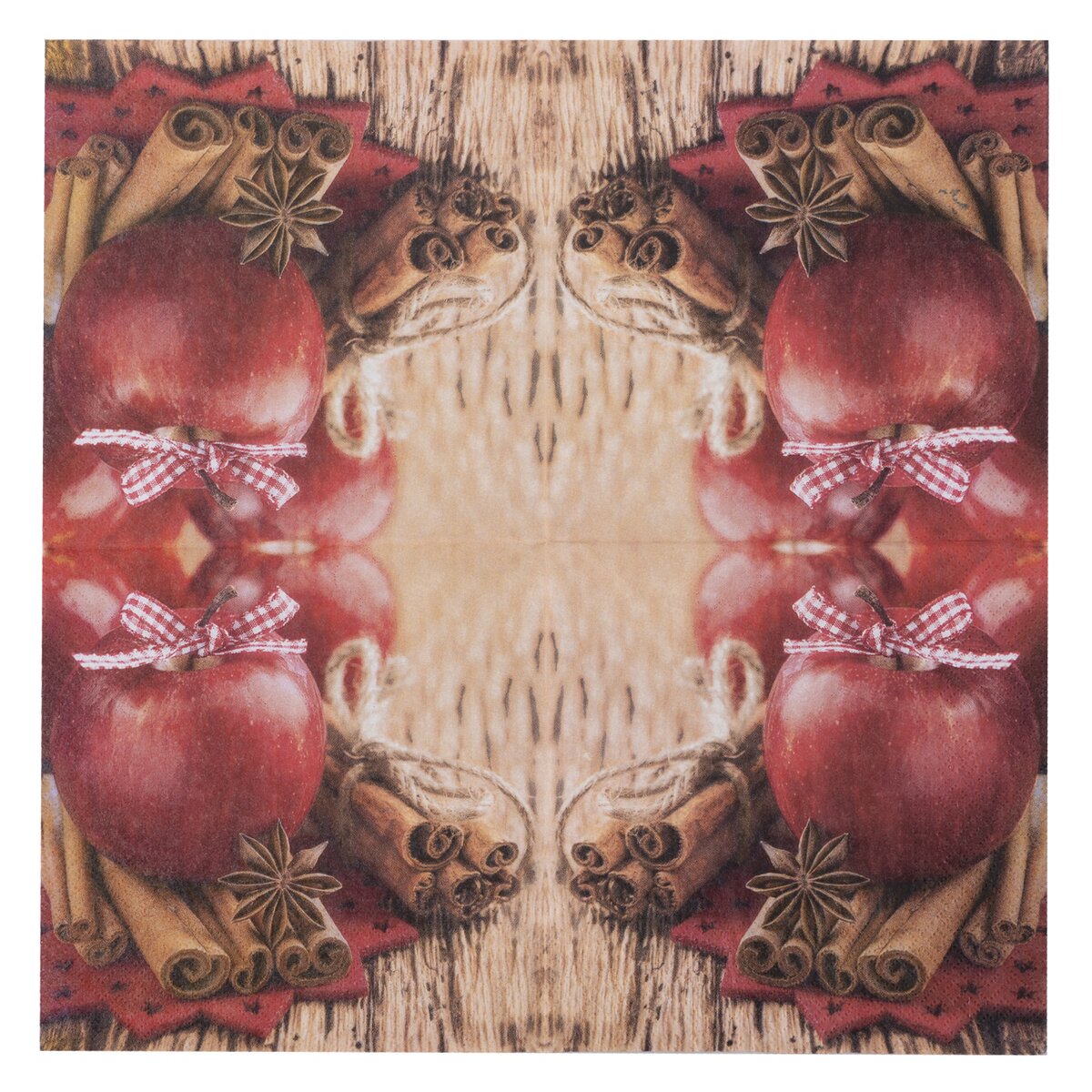 Kód produktu 842372Sada 20 ks papírových ubrousků je zdobena vánočním motivem s jablíčkem a skořicí. Ubrousky mají velikost 33x33 cm a doplní prostřený stůl o vánočních svátcích i v období Adventu.