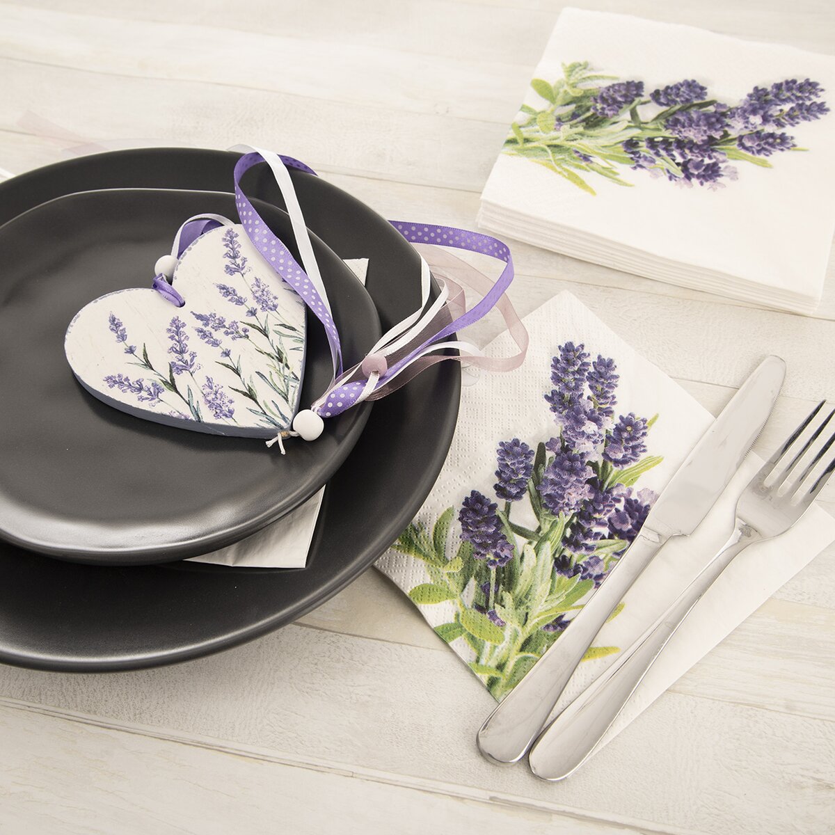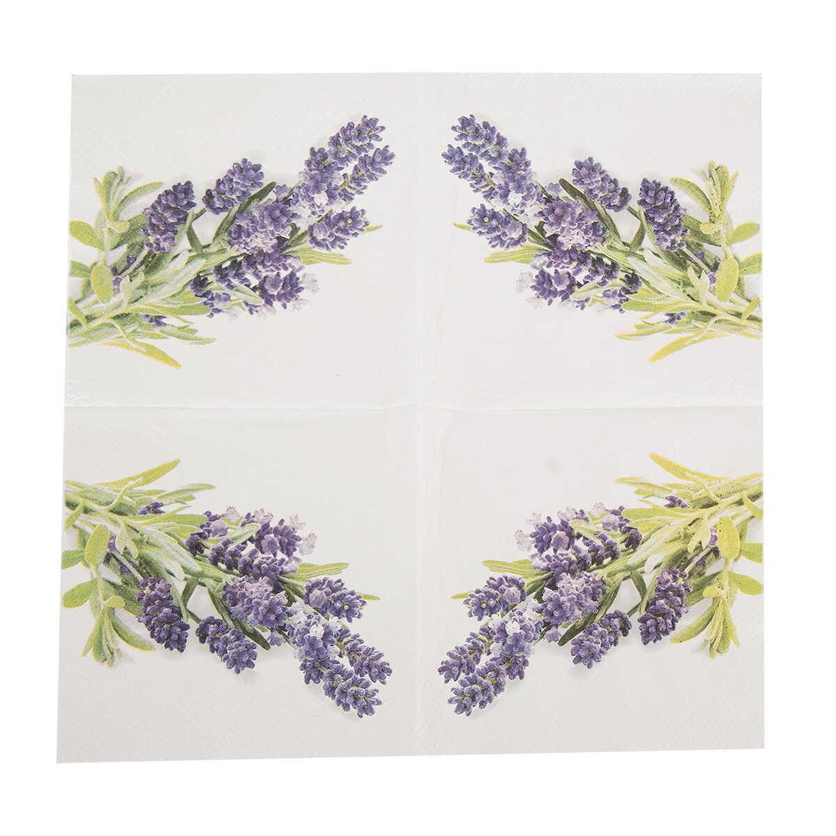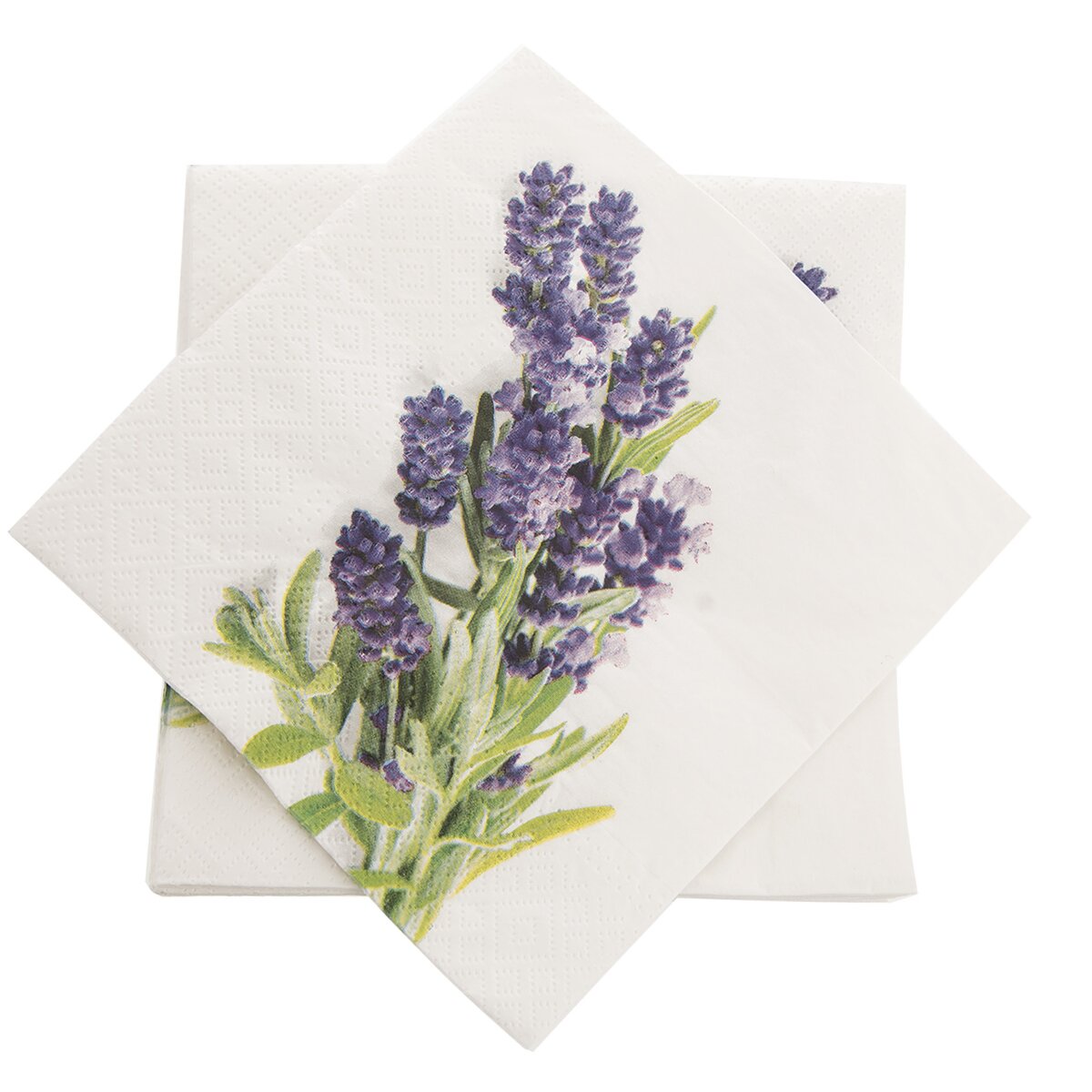 Kód produktu 841898Sada 20 ks světlých papírových ubrousků s tištěným motivem levandule, velikosti 33x33 cm, doplní prostřený stůl, piknikový košík i posezení na terase.