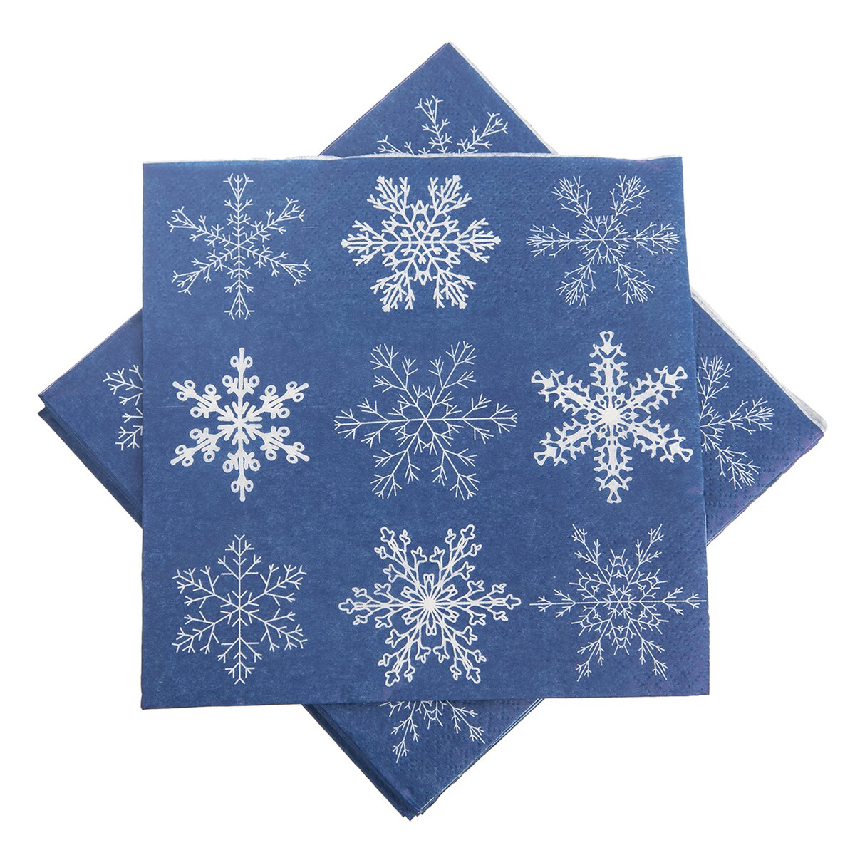 Kód produktu 842303Sada 20 ks vánočně laděných papírových ubrousků zaujme motivem bílých vloček na modrém podkladu. Mají velikost 33x33 cm.
