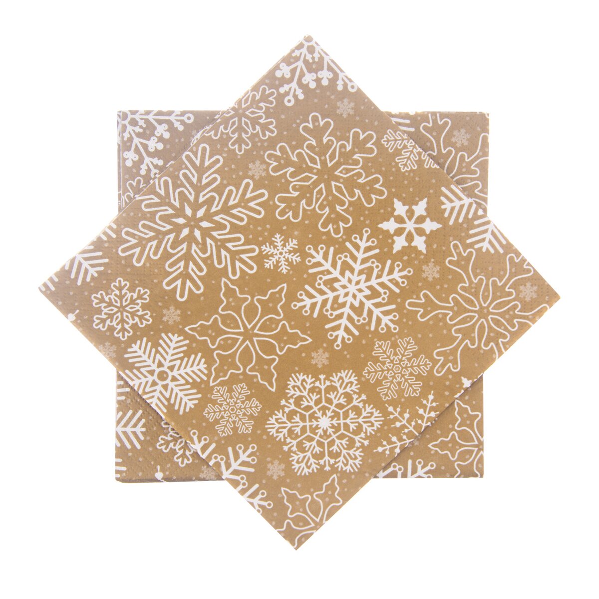 Kód produktu 842308Sada 20 ks papírových ubrousků v odstínu tlumené zlaté jsou zdobeny motivem vloček. Mají velikost 33x33 cm a doplní prostřený stůl o vánočních svátcích i v období Adventu.